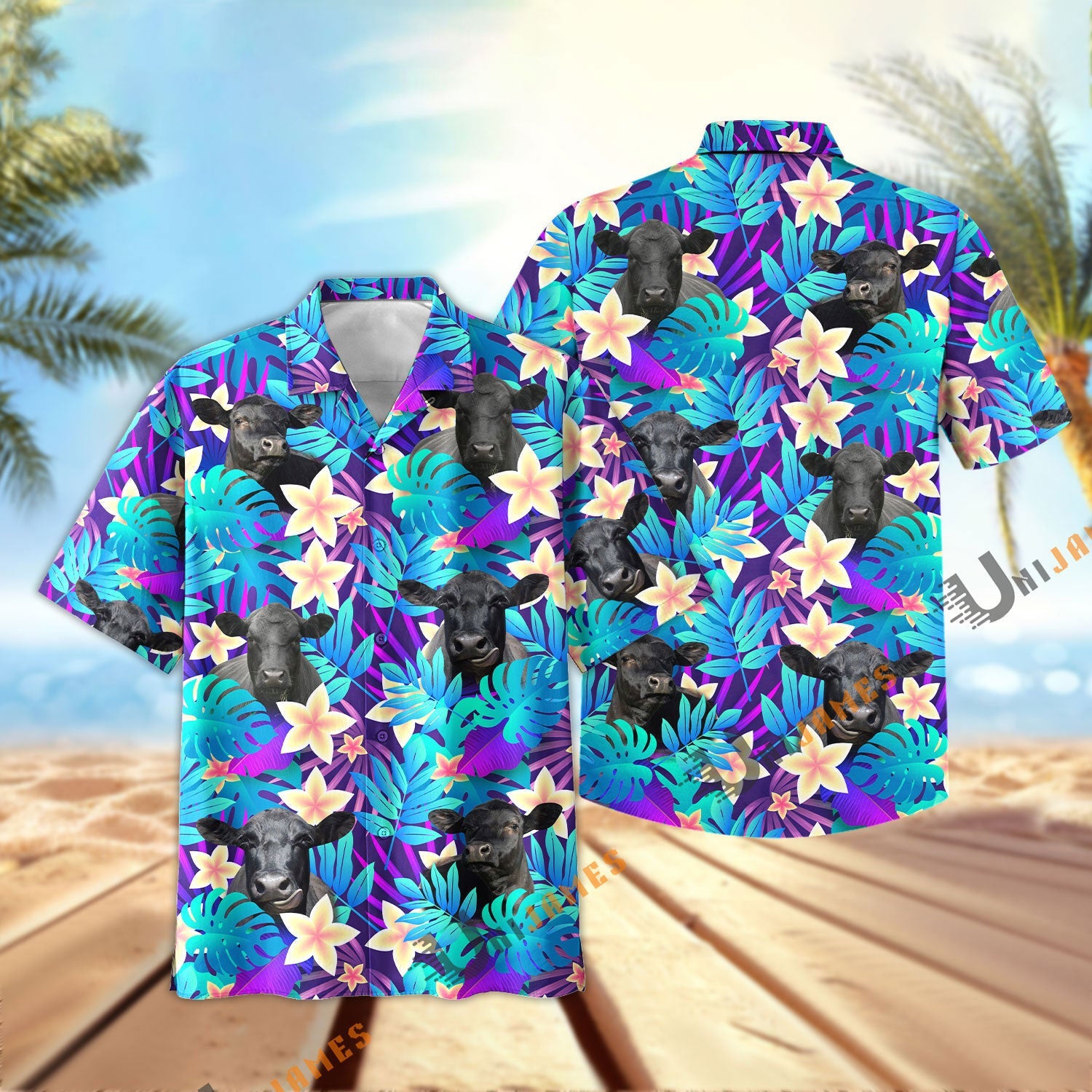 Uni Black Angus Light Blue Flowers 3D Hawaiian Shirt