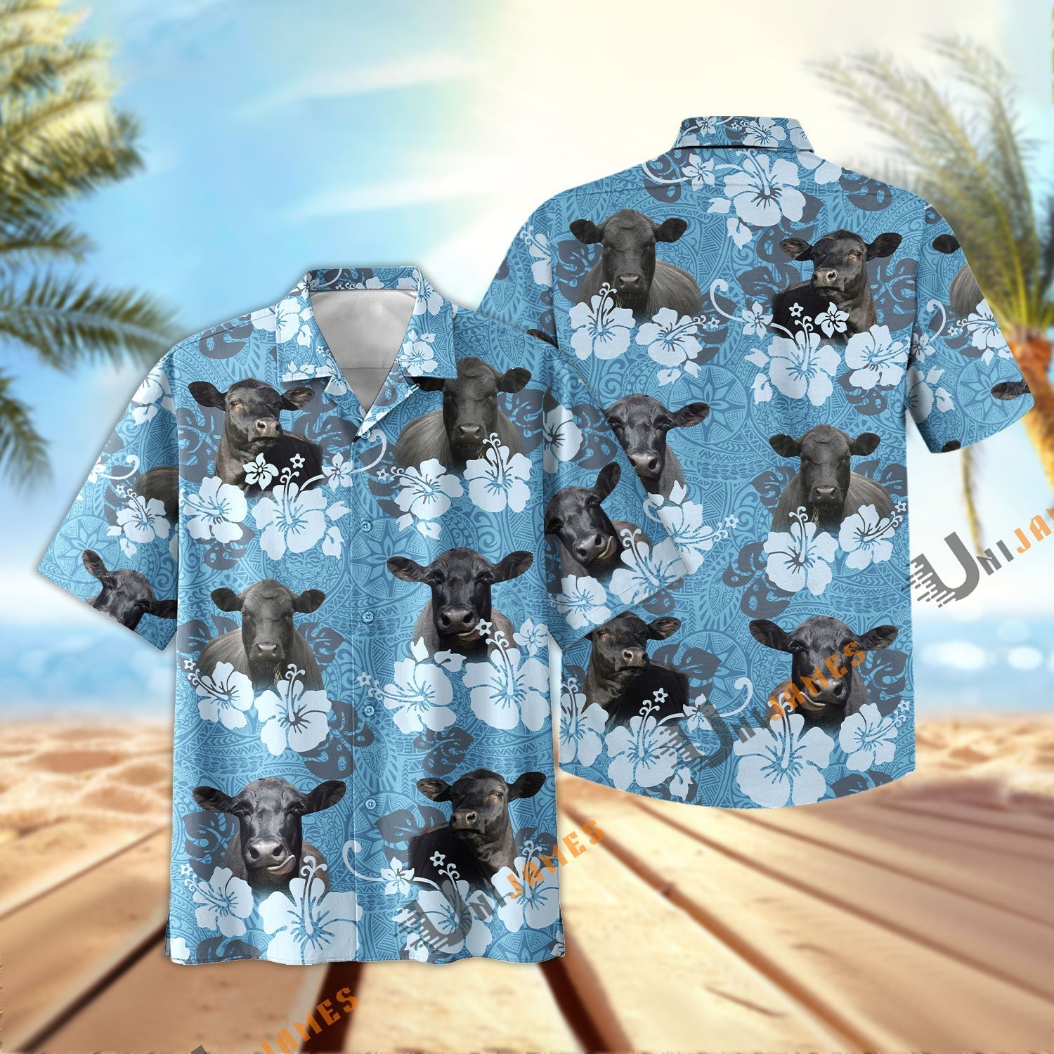Uni Black Angus Tribal Flowers Hawaiian Shirt