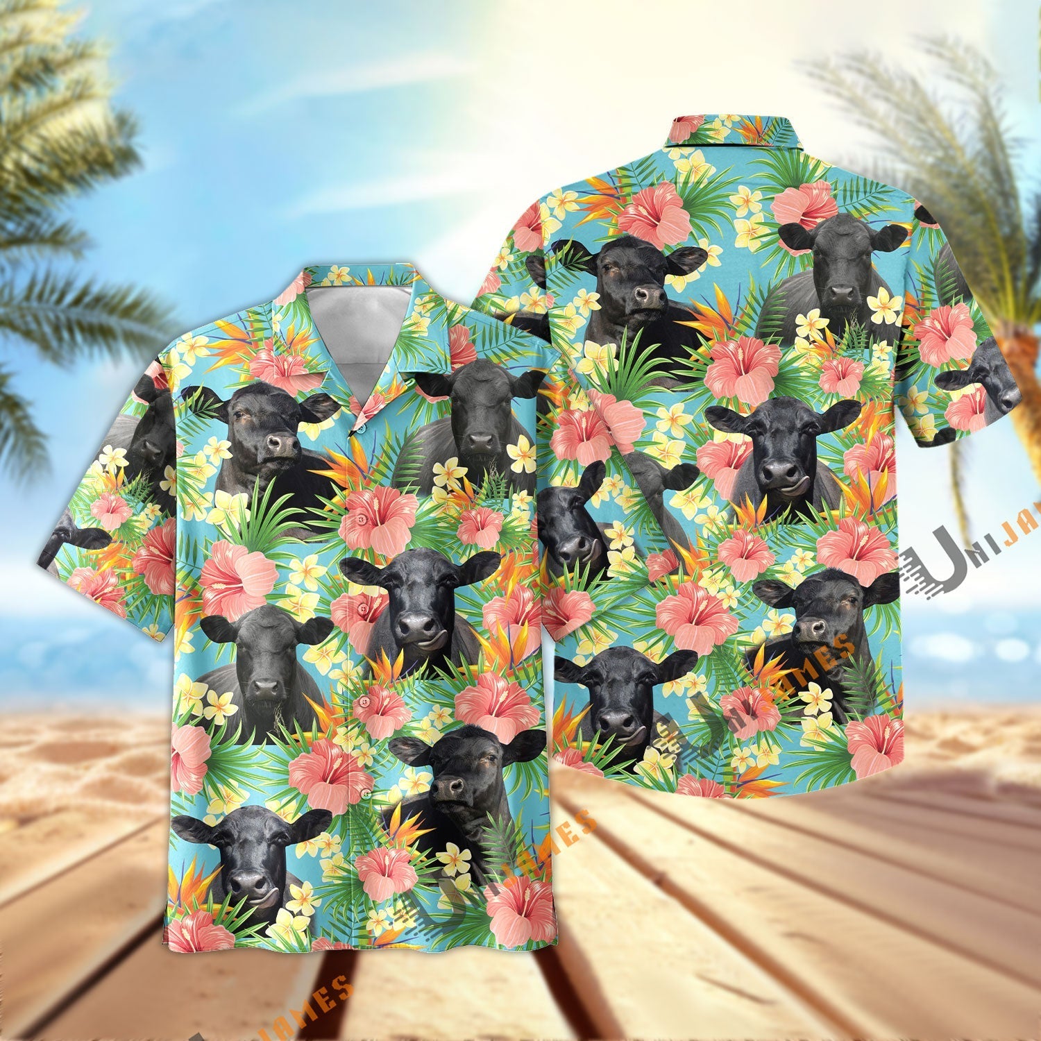 Uni Black Angus Tropical Plants Leaves 3D Hawaiian Shirt