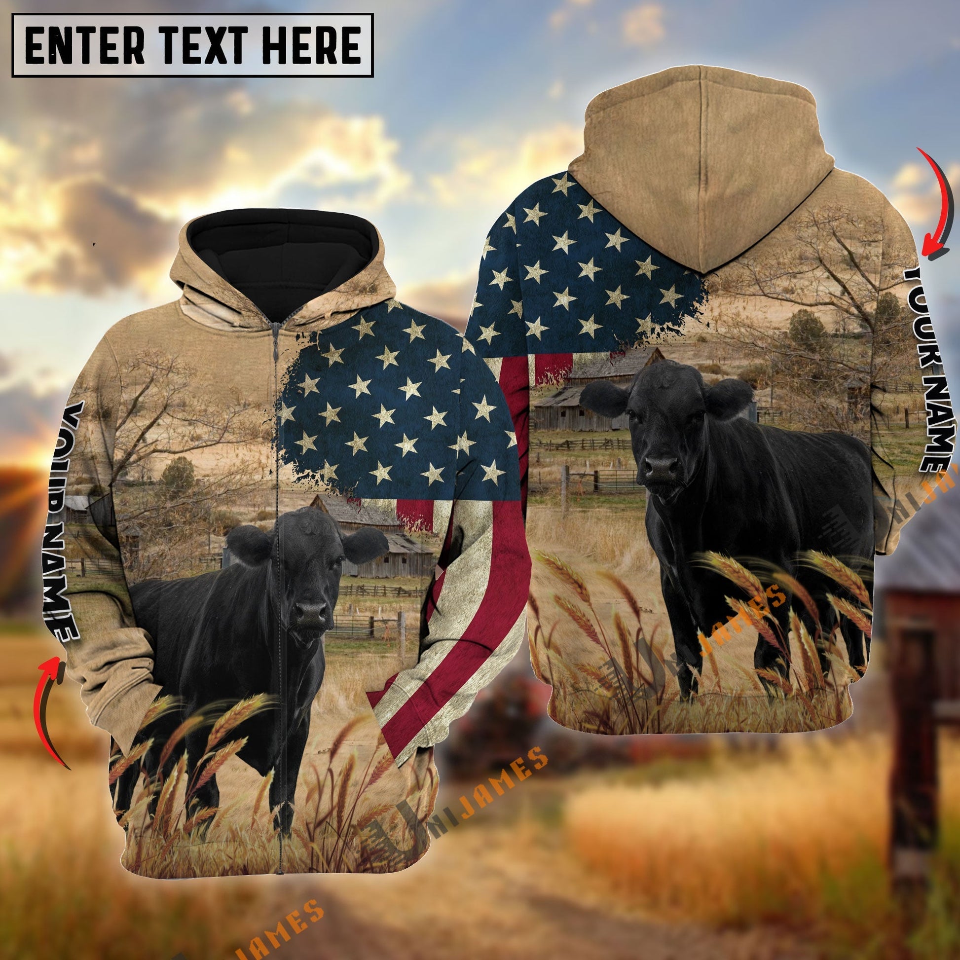Uni Black Angus US Flag Customized Name 3D Hoodie