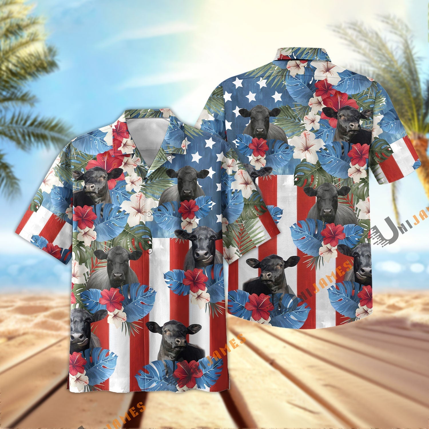Uni Black Angus US Flag Vintage 3D Hawaiian Shirt