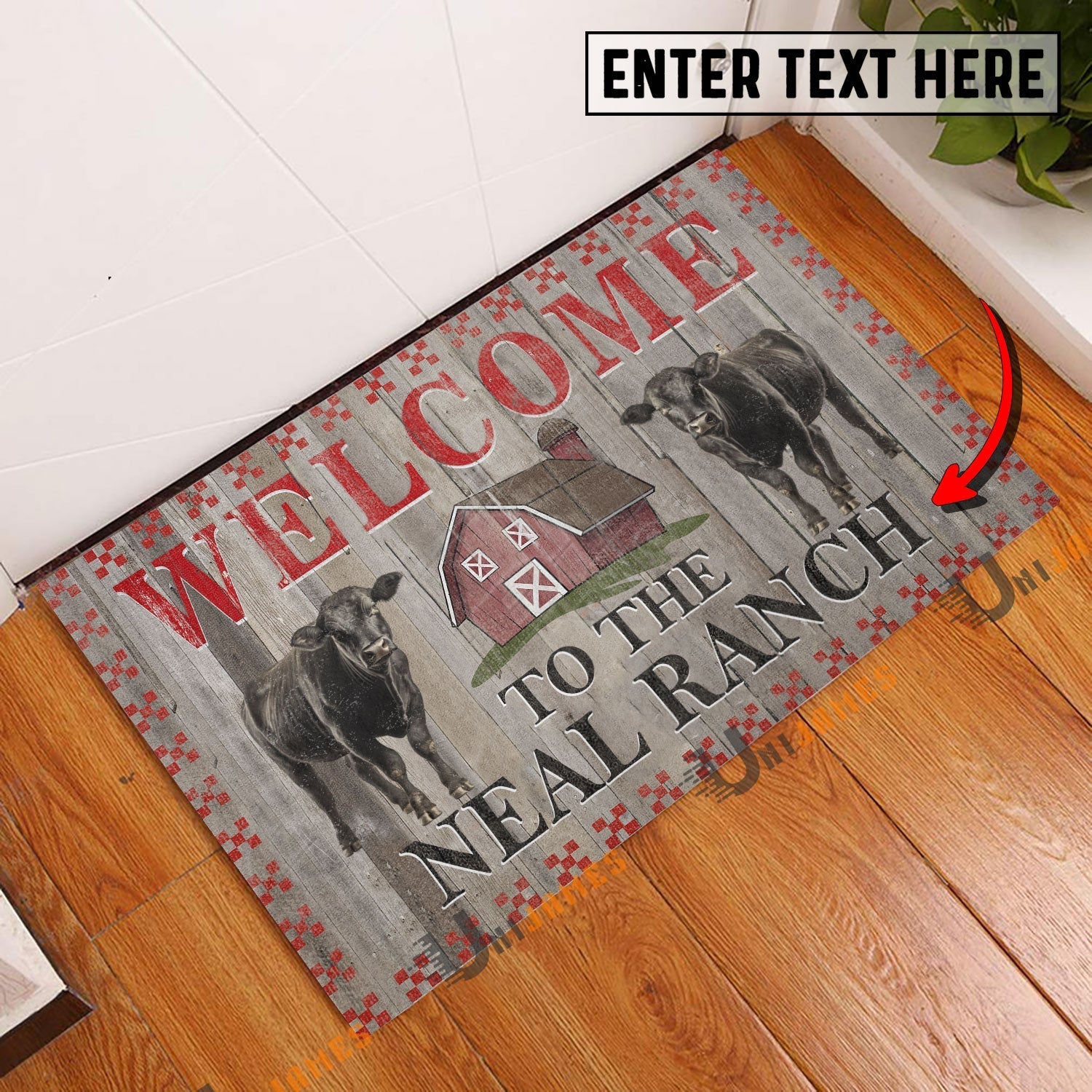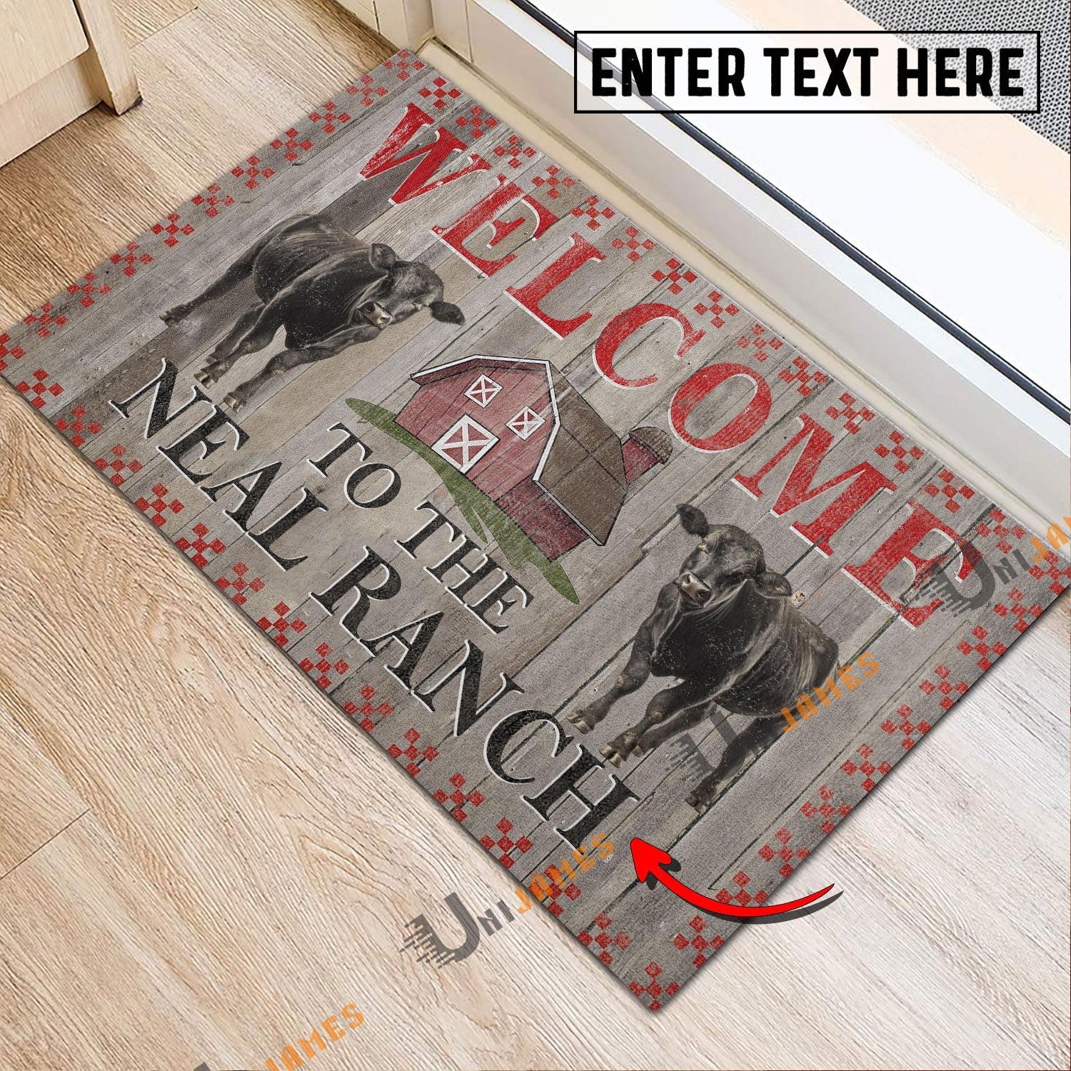 Uni Black Angus Welcome To The Farmhouse Custom Name Doormat