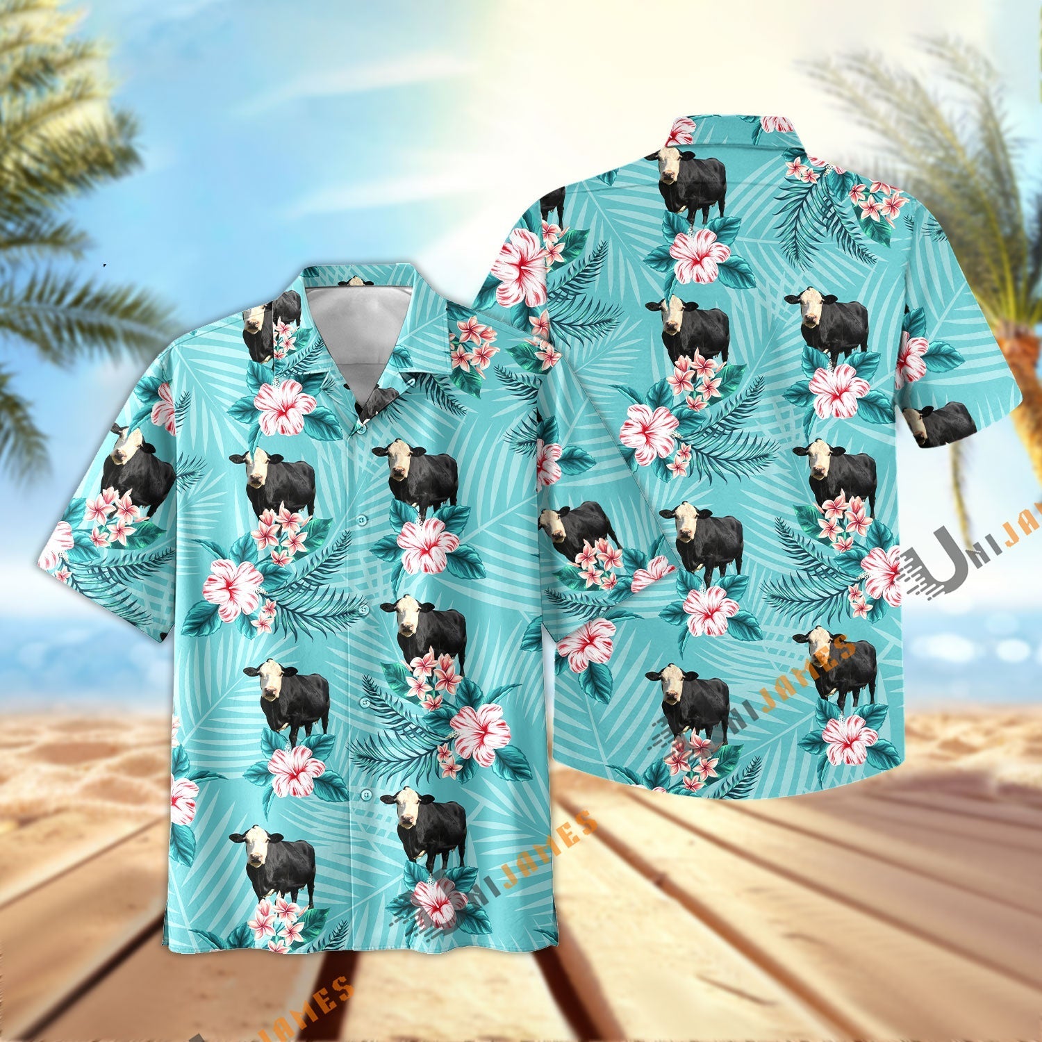 Uni Black Baldy Aloha Cyan Color Hawaiian Shirt