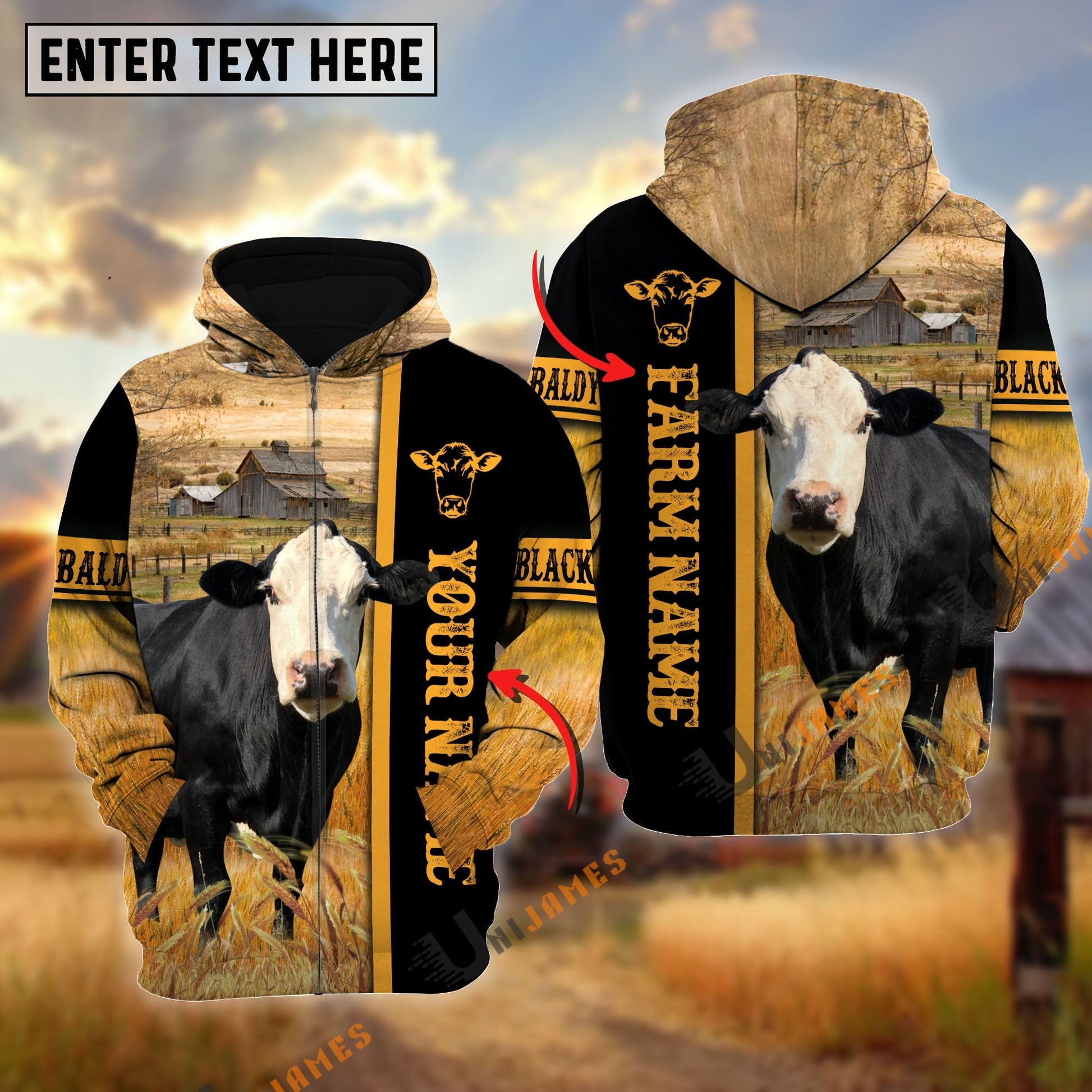 Uni Black Baldy Autumn Farming Personalized Name, Farm Name 3D Hoodie