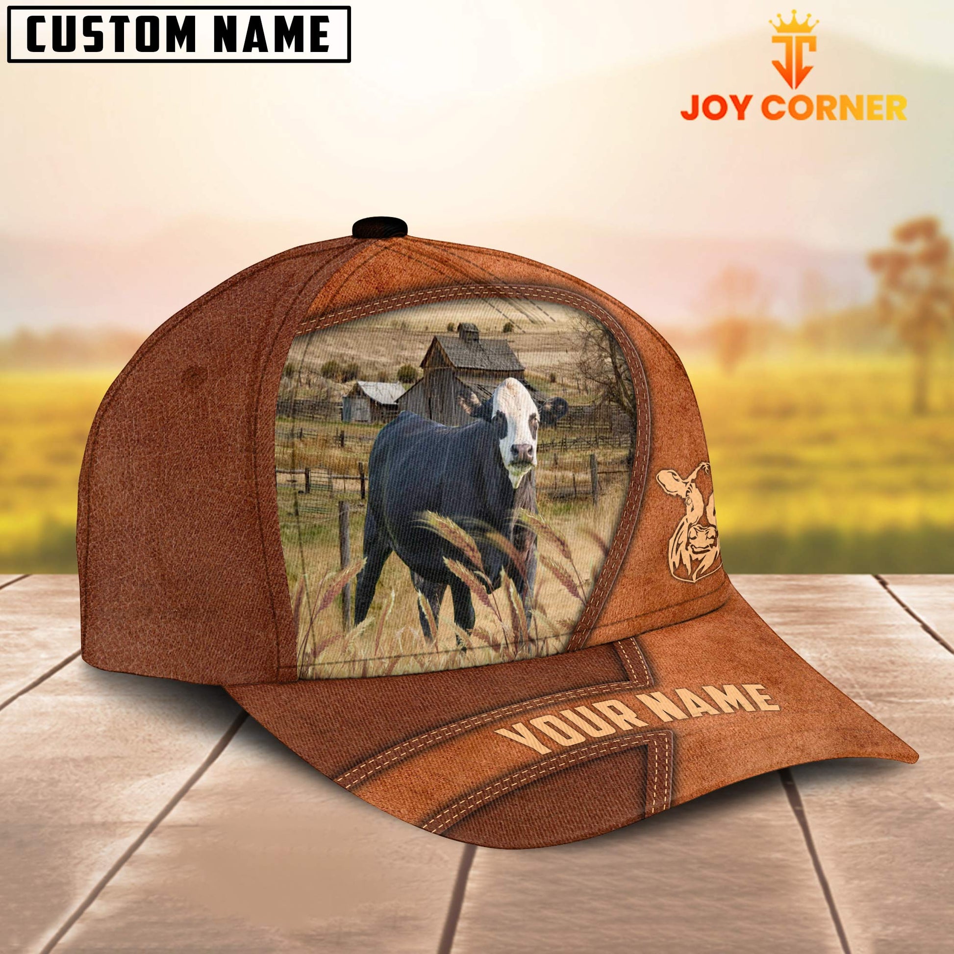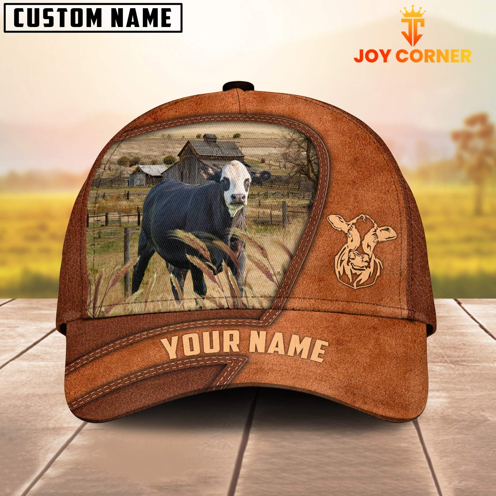 Uni Black Baldy Customized Name Brown Leather Pattern Cap