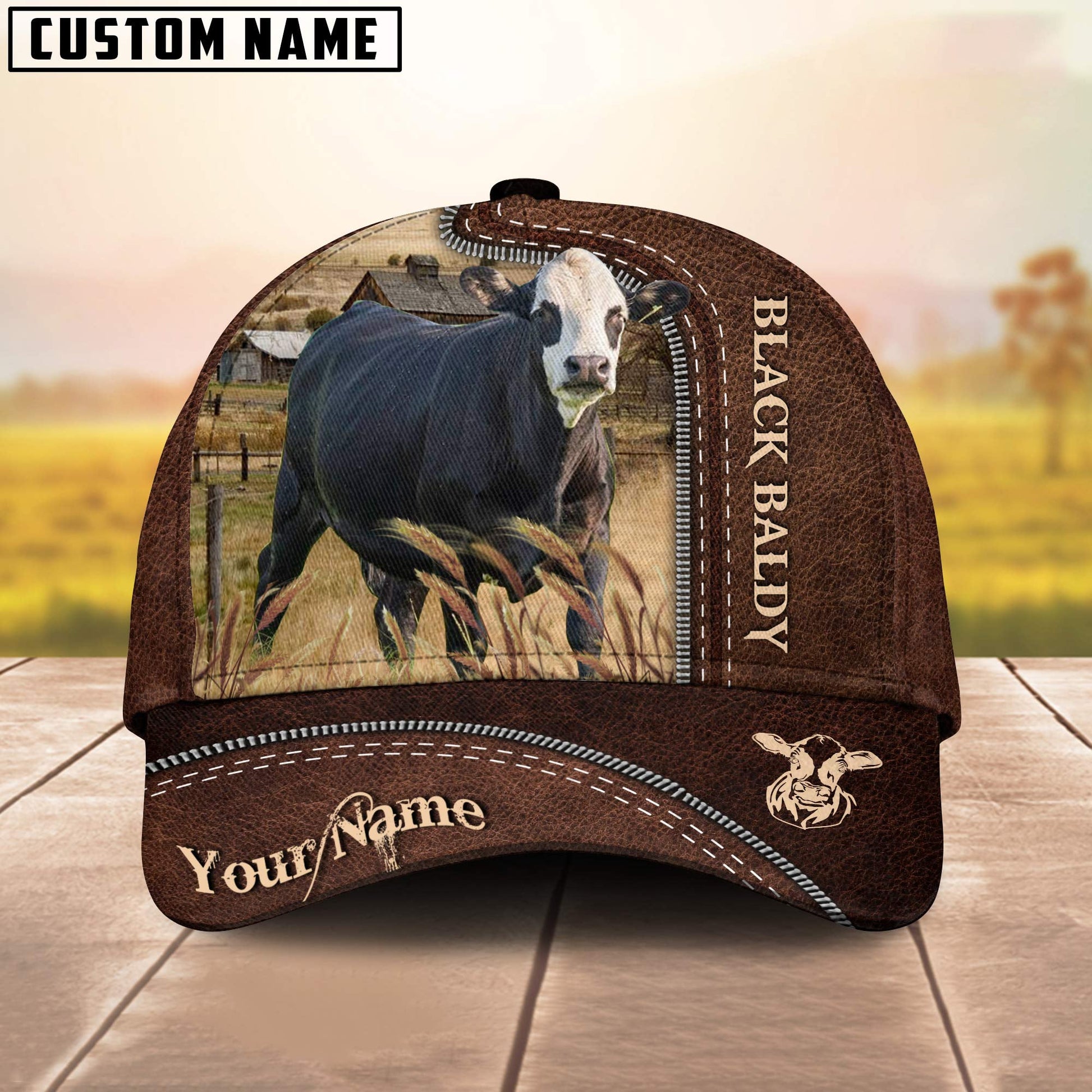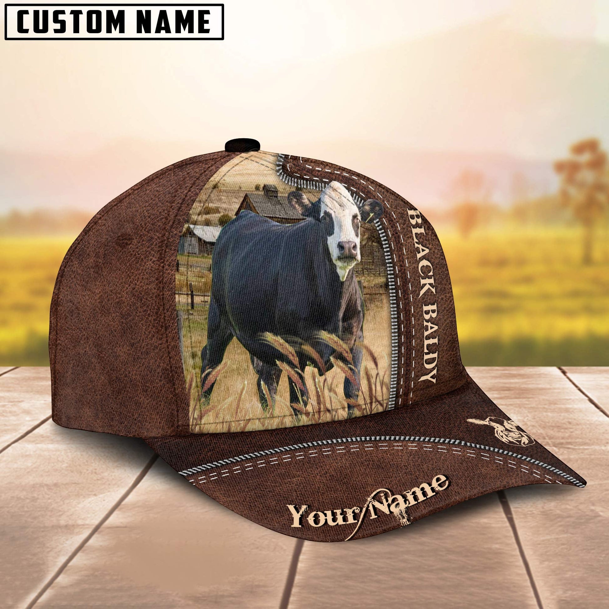 Uni Black Baldy Customized Name Leather Pattern Cap