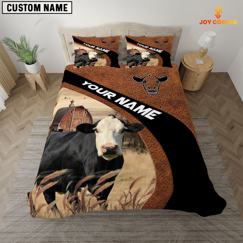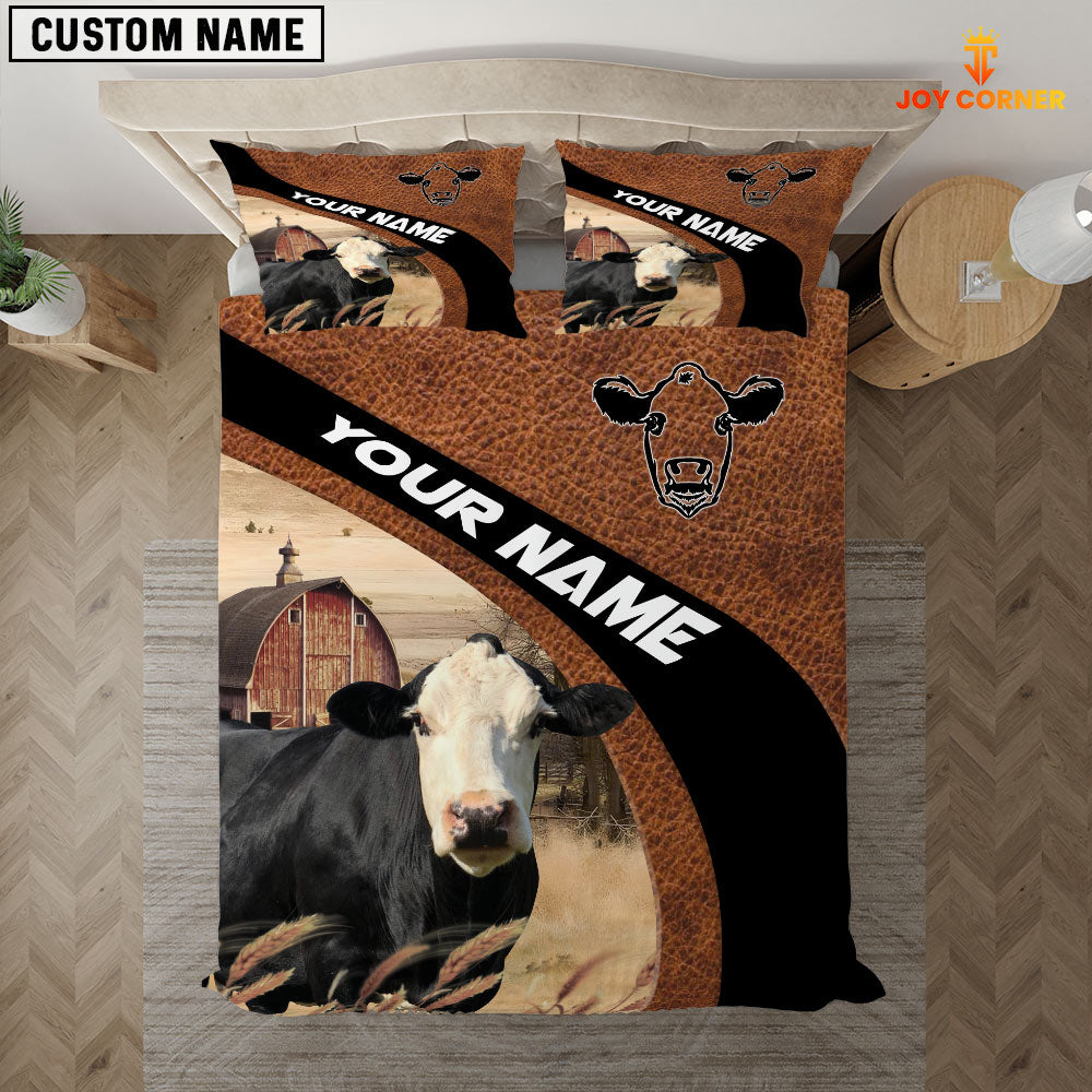 Uni Black Baldy On The Farm Customized Name Red Barn Bedding Set