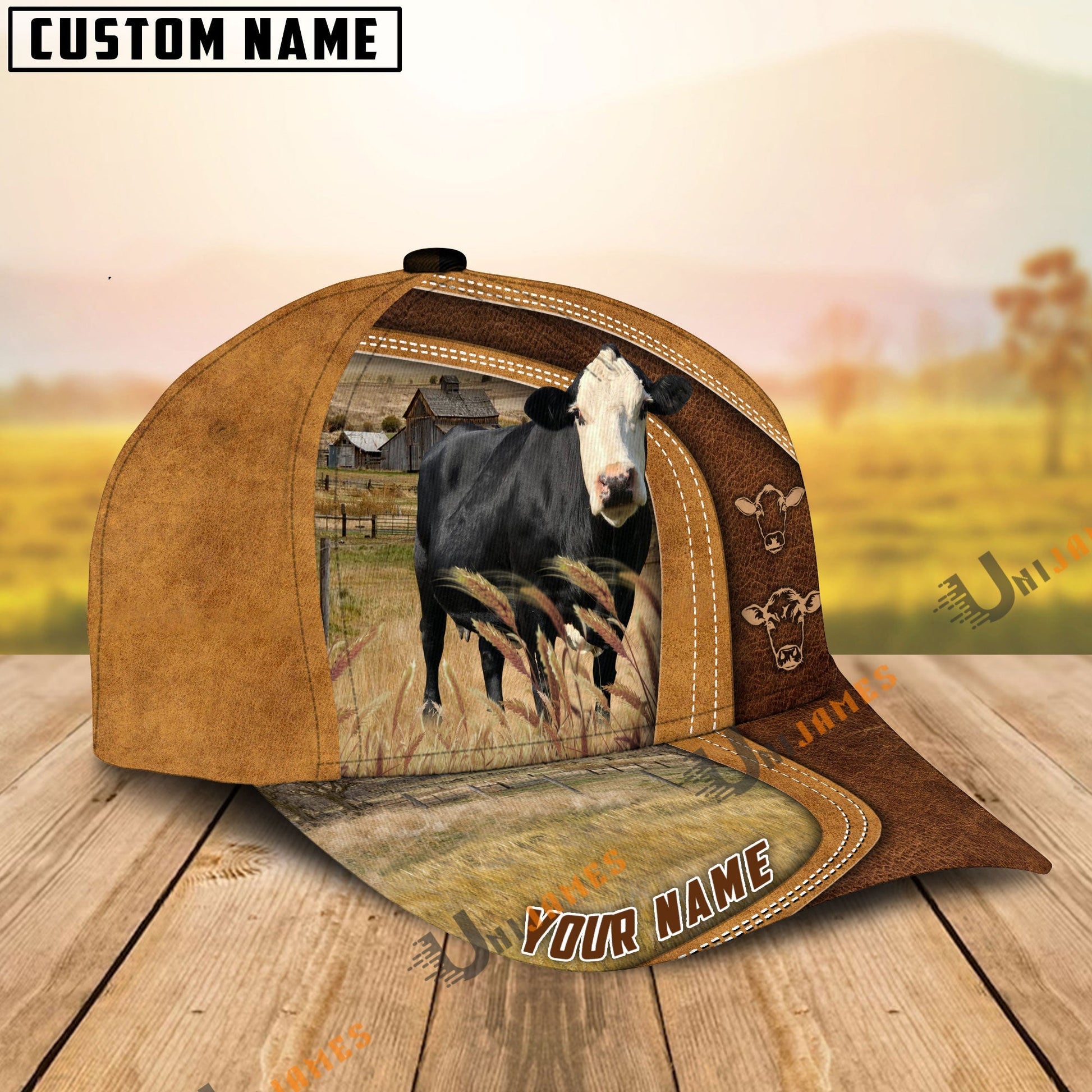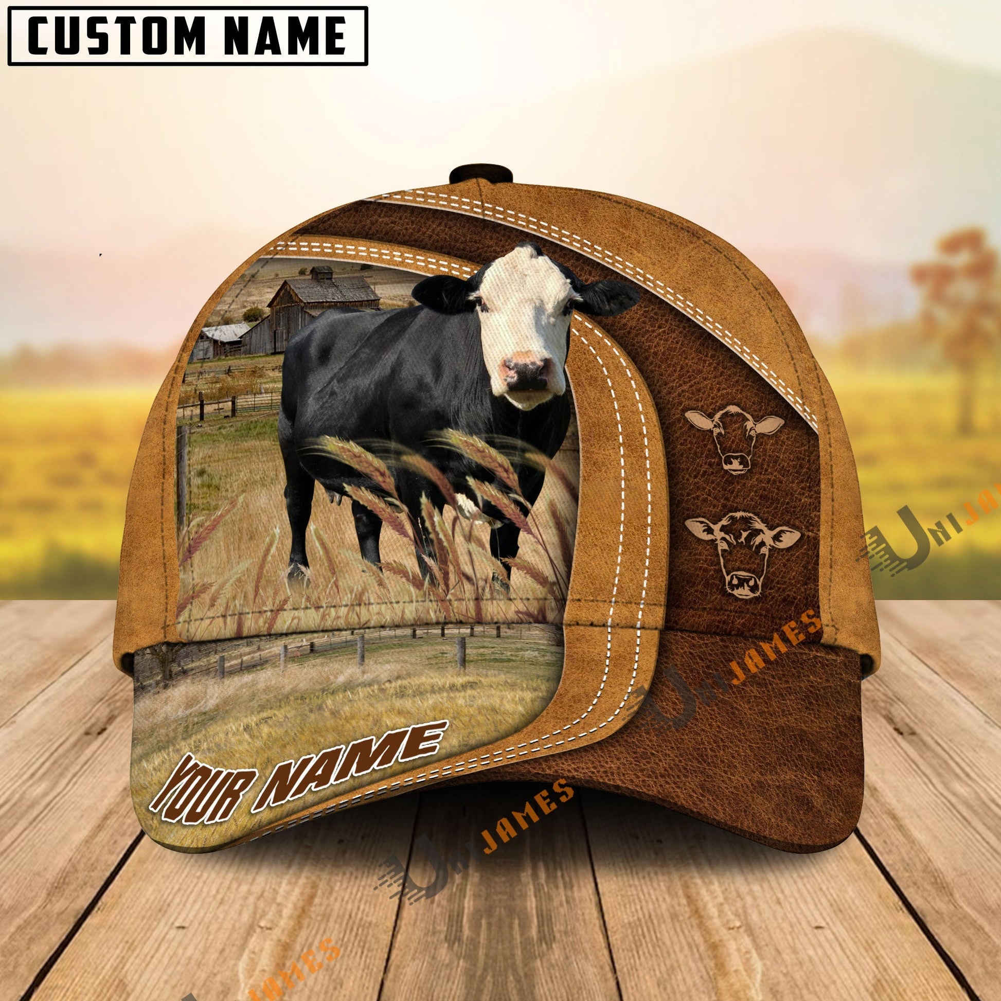 Uni Black Baldy Ranch Lift Leather Pattern Customized Name Cap