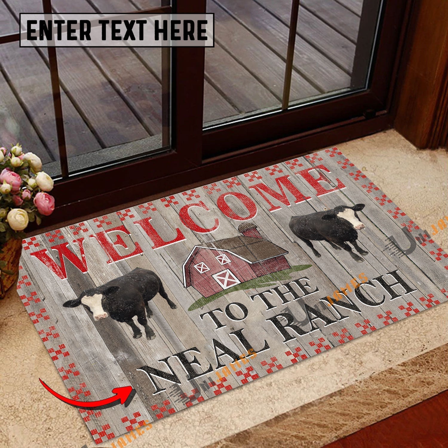 Uni Black Baldy Welcome To The Farmhouse Custom Name Doormat