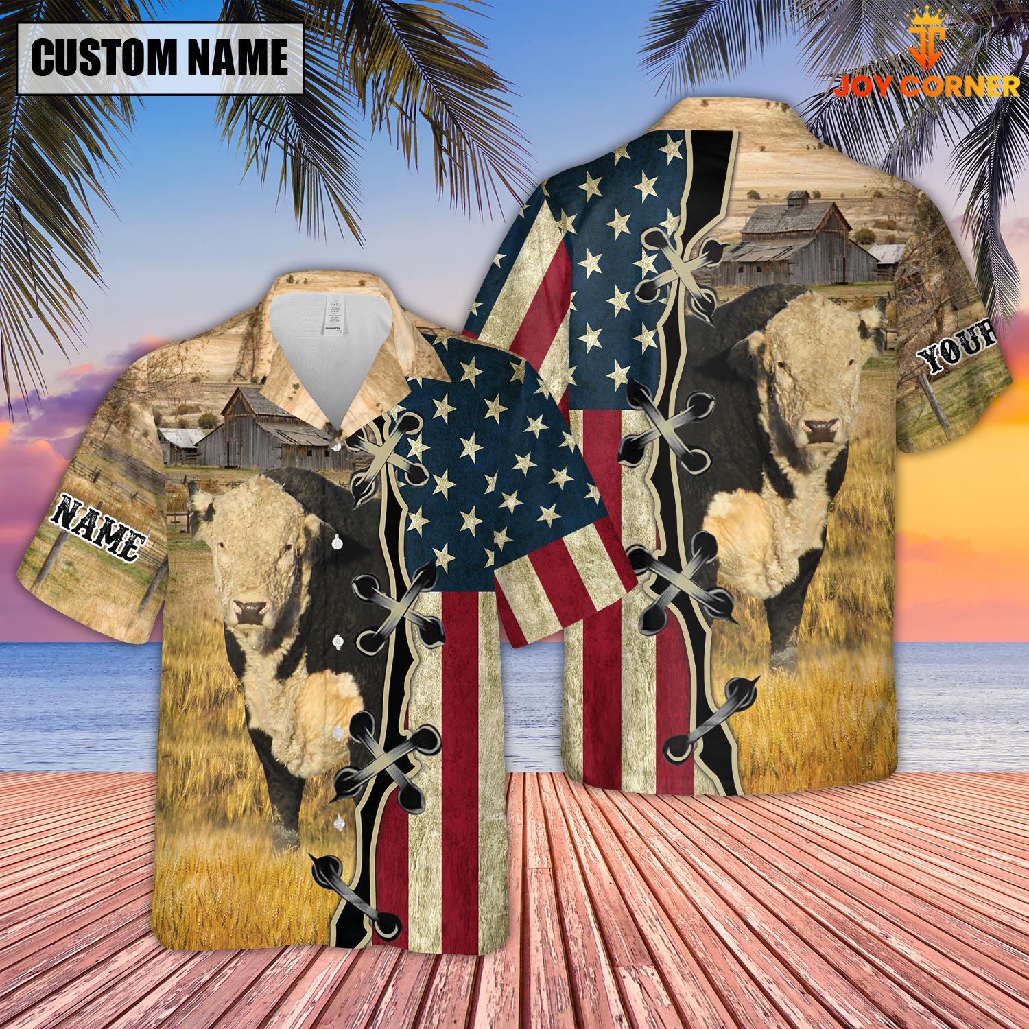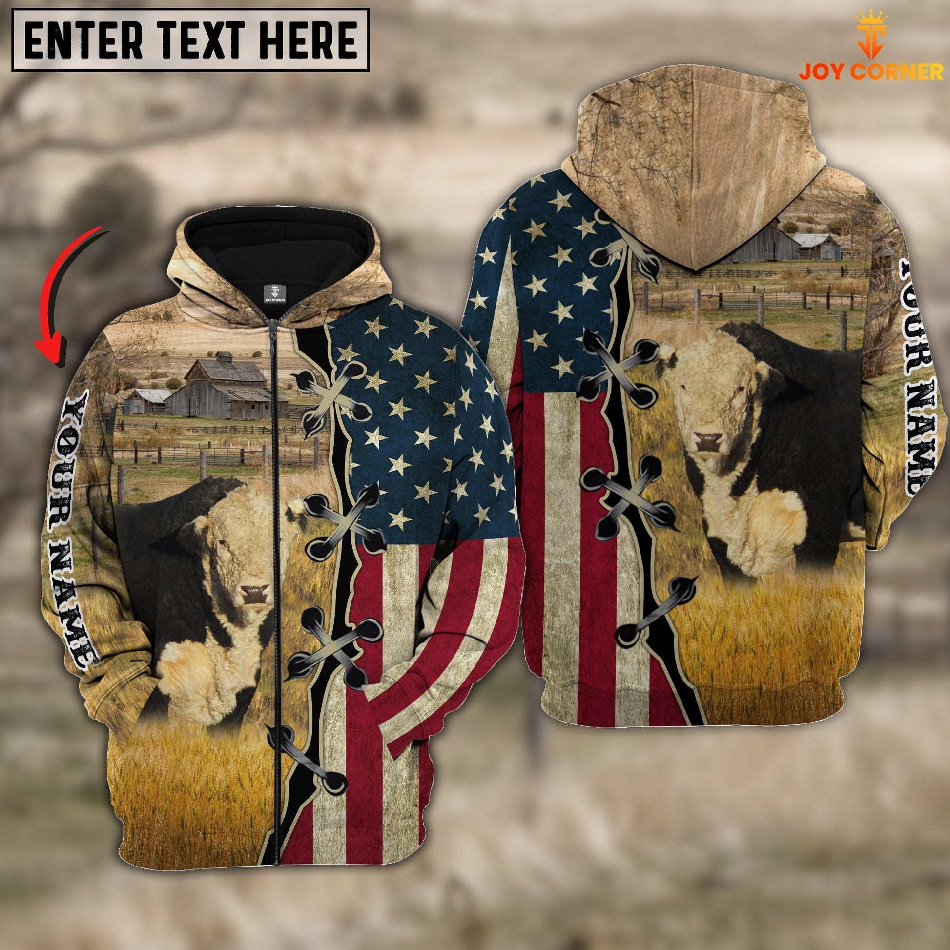 Uni Black Hereford On Farms Custom Name American Flag 3D Shirt