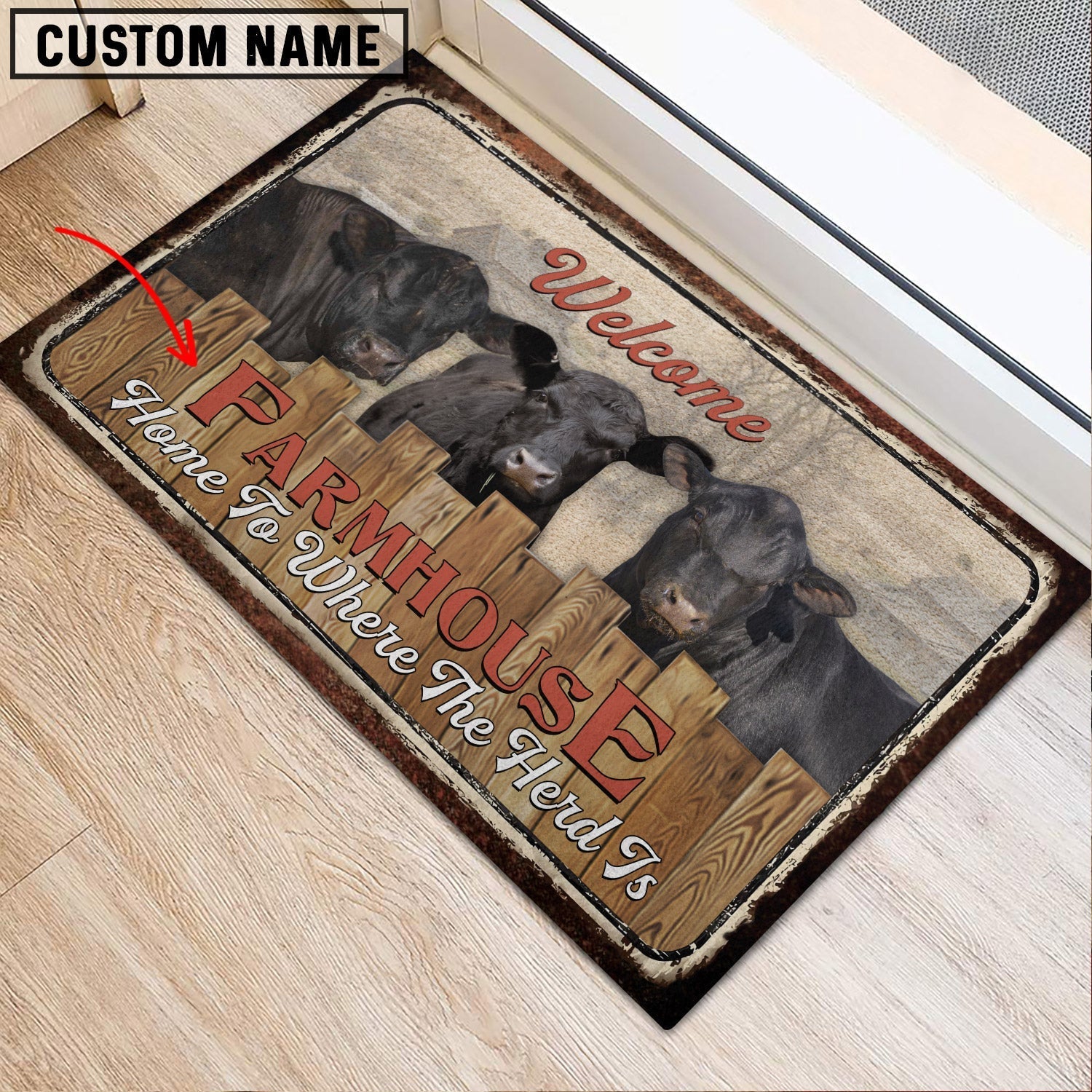 Uni Black Sim Angus Personalized - Welcome Doormat