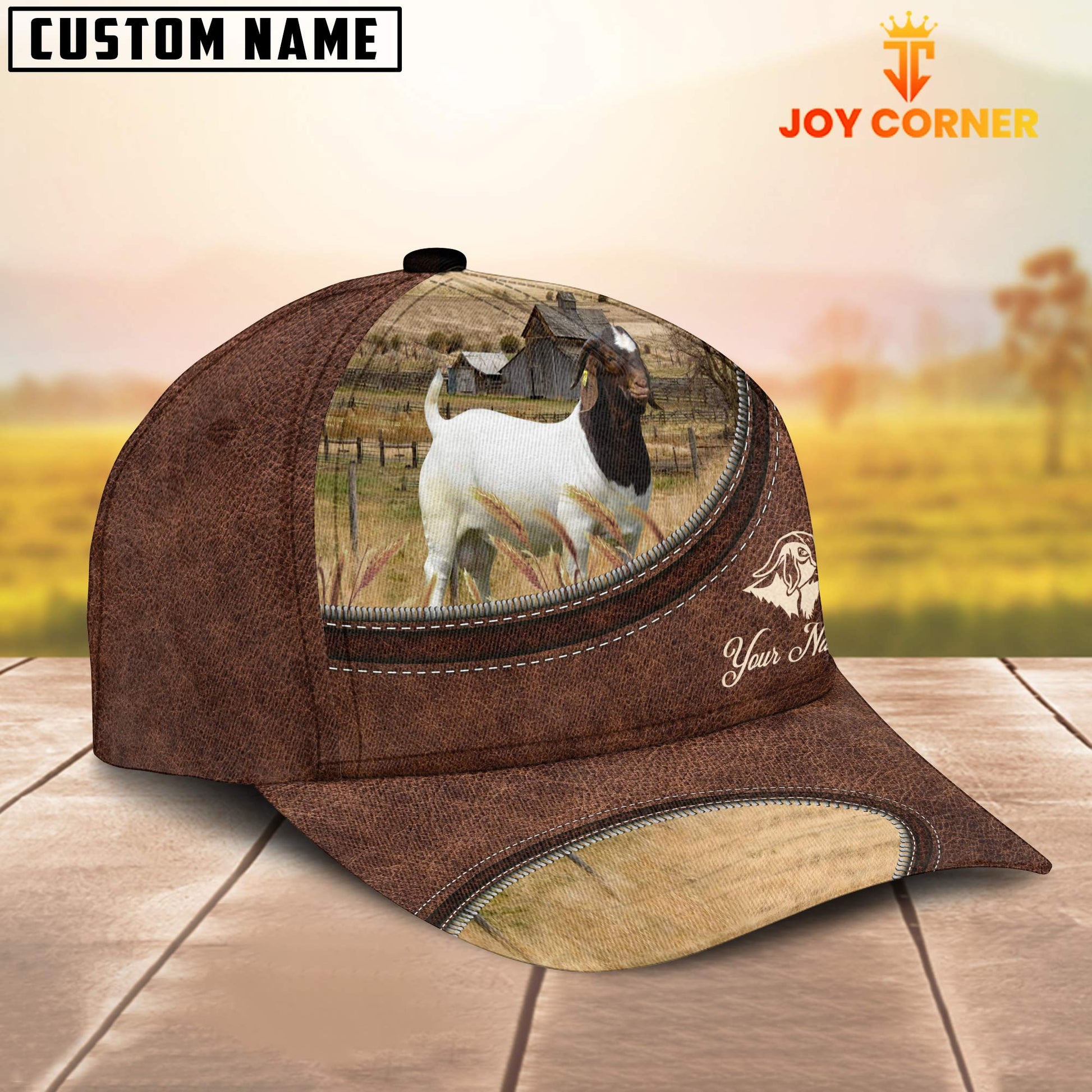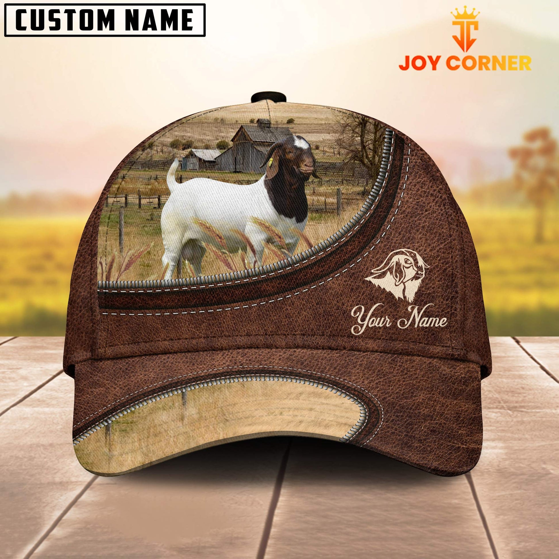 Uni Boer Goat On The Farm Customized Name Leather Pattern Cap