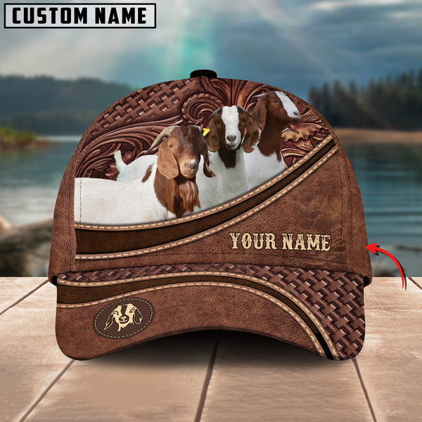 Uni Boer Goat Personalized Name Brown Carving Leather Pattern 3D Classic Cap