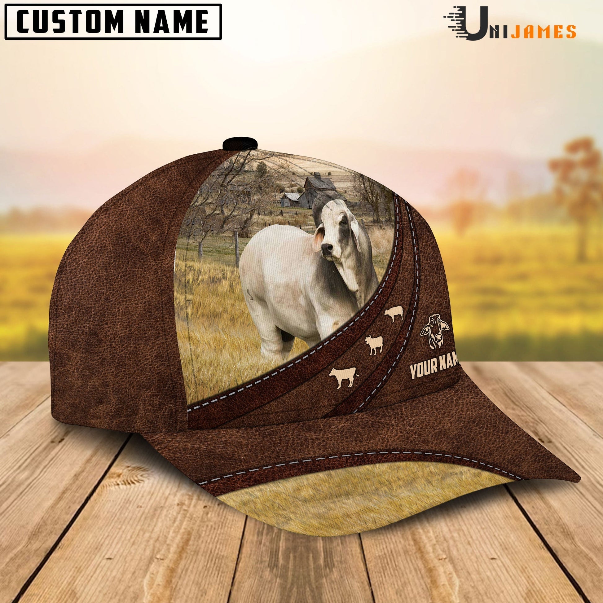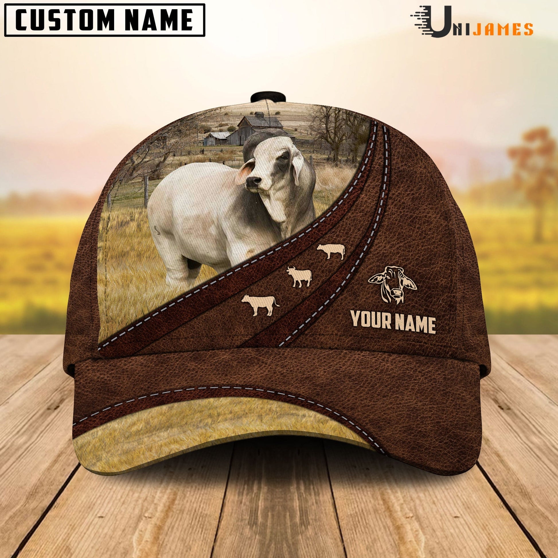 Uni Brahman Amazing Farm Leather Pattern Customized Name Cap