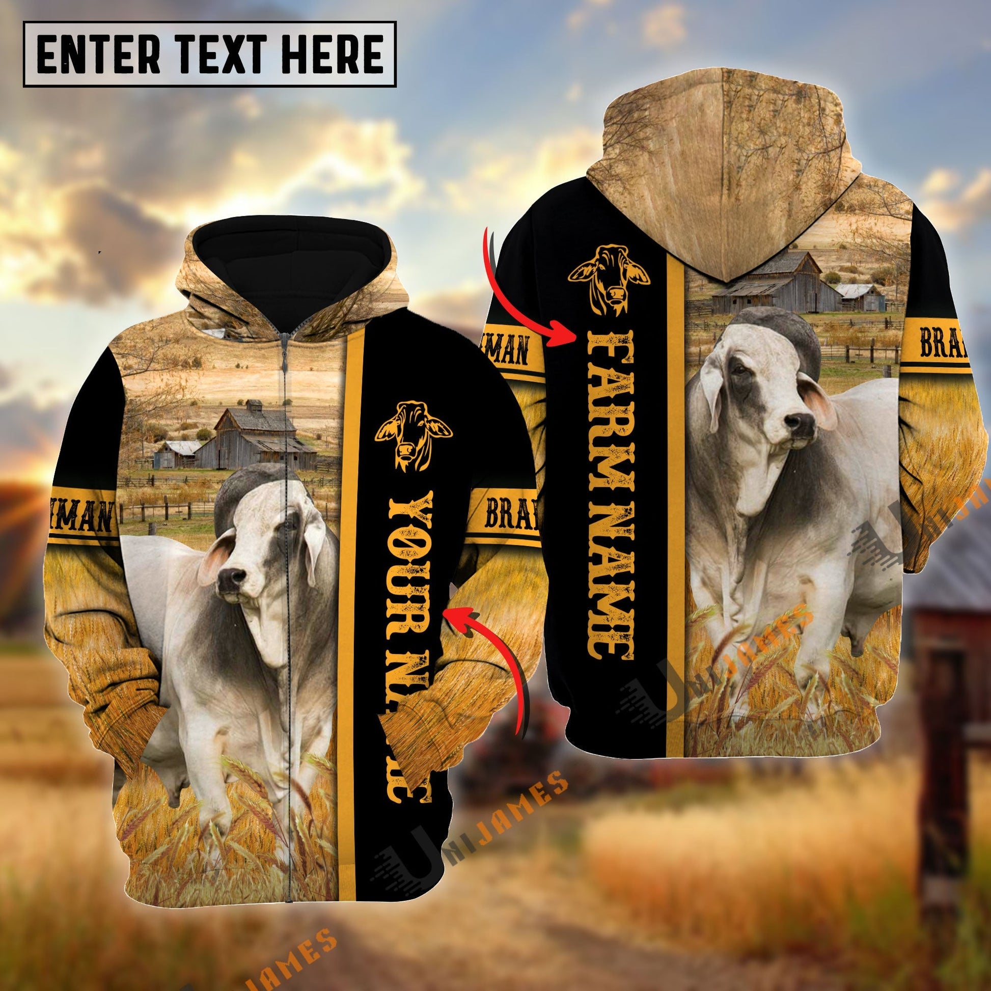 Uni Brahman Autumn Farming Personalized Name, Farm Name 3D Hoodie