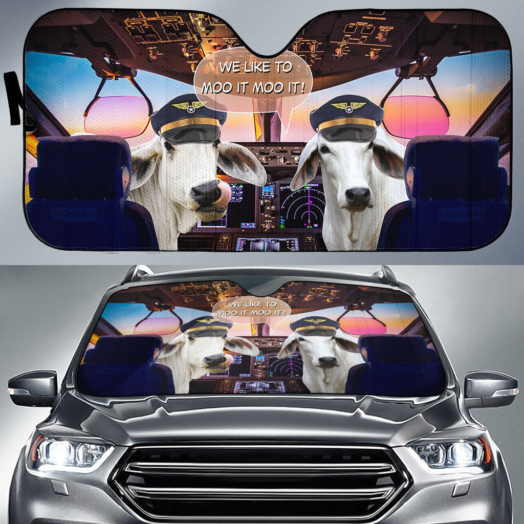Uni Brahman Cattle Pilot I Like To Moo It Moo It All Over Printed 3D Sun Shade