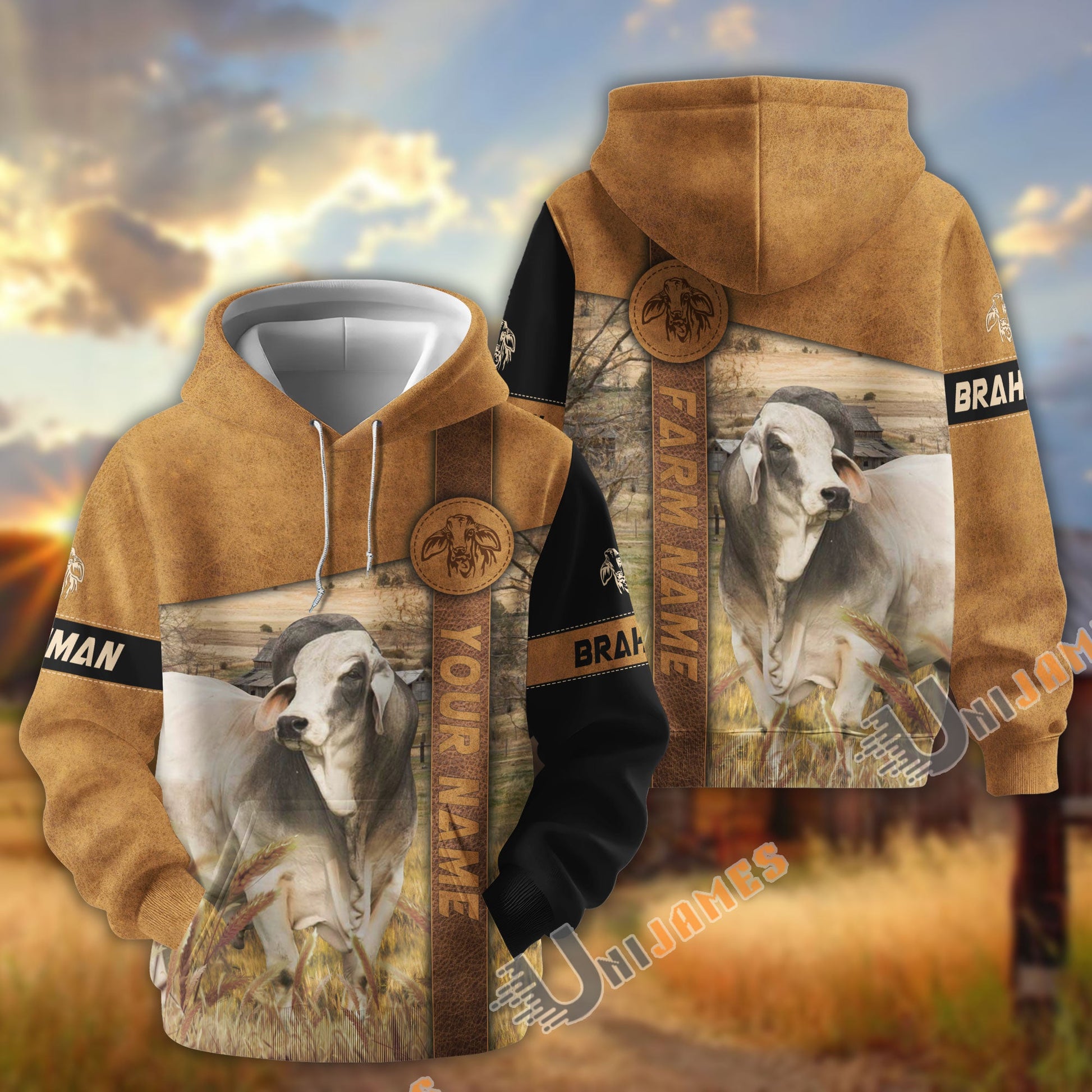 Uni Brahman Customize Name, Farm Name Brown Pattern Hoodie