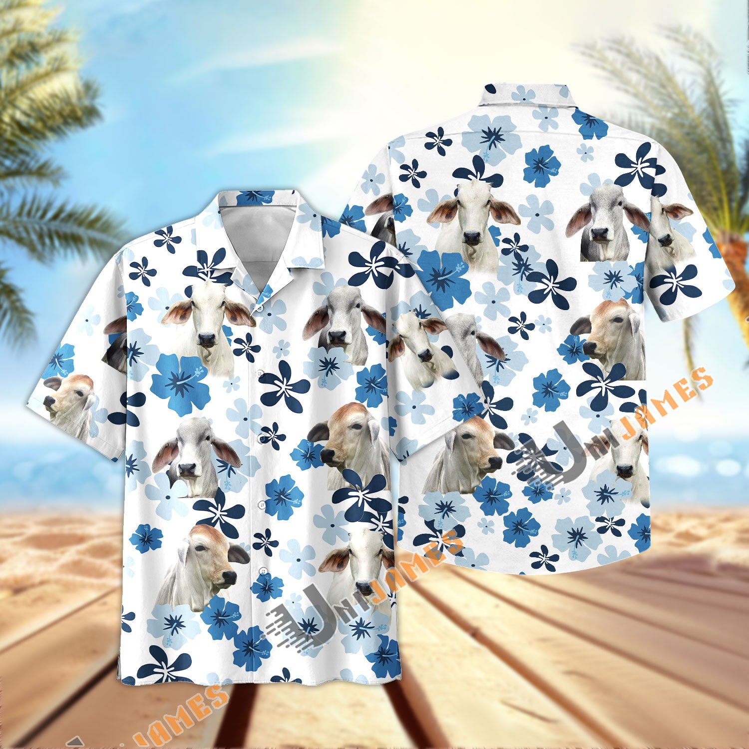 Uni Brahman Retro Blue Aloha Floral Hawaiian Shirt