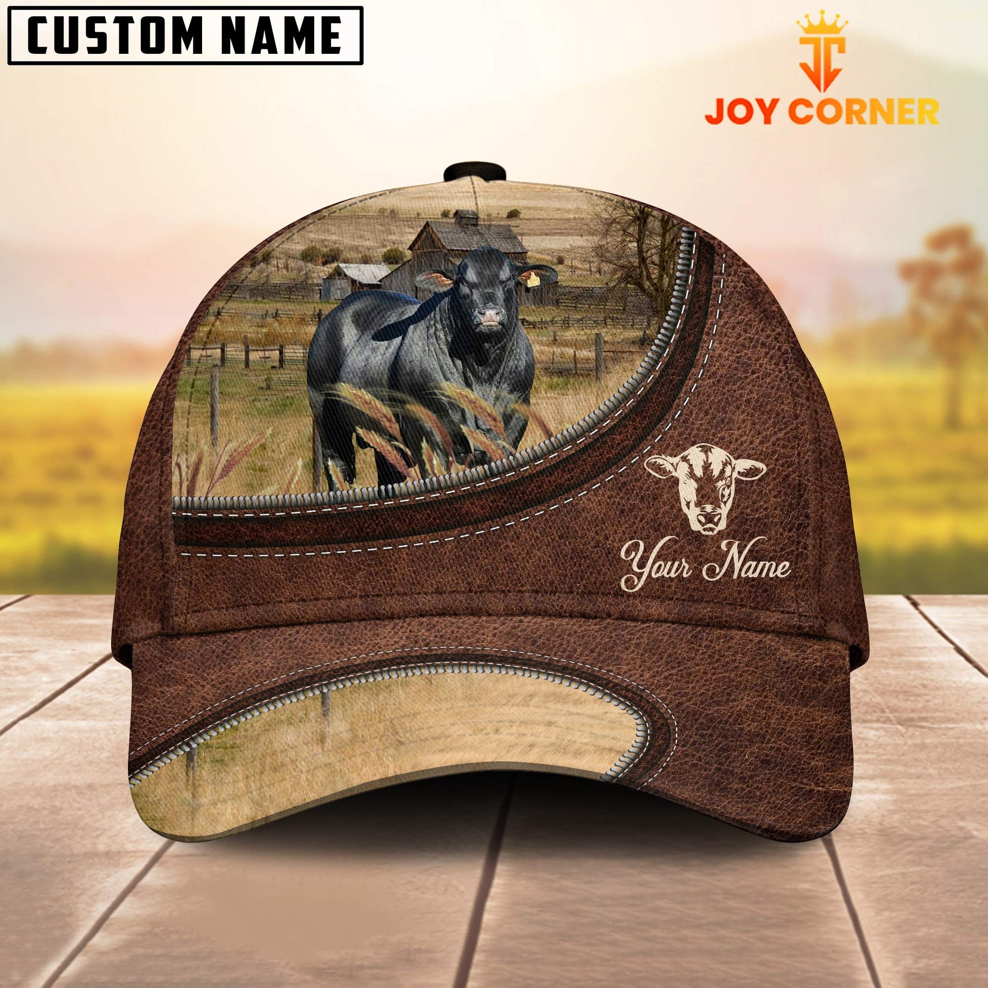 Uni Brangus On The Farm Customized Name Leather Pattern Cap