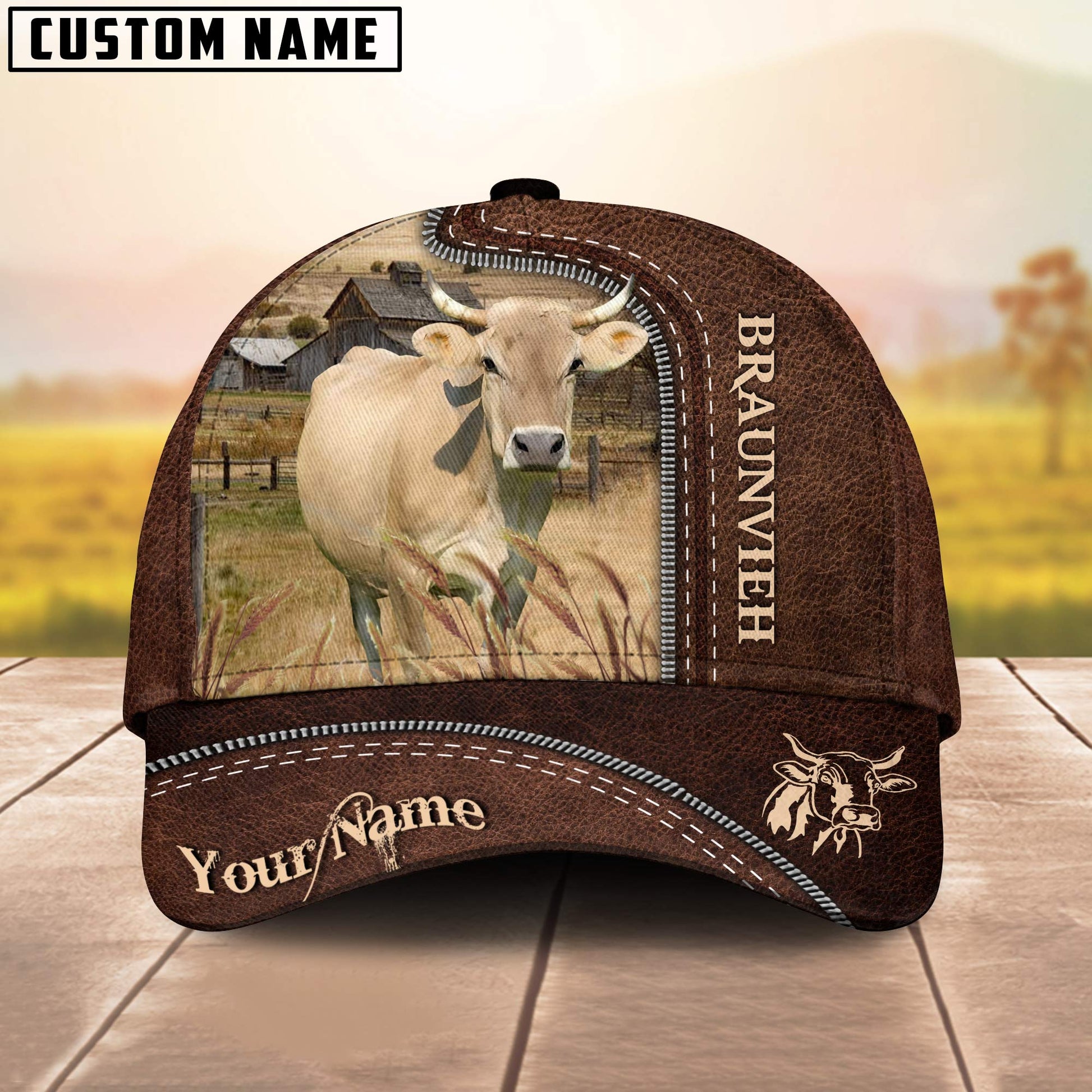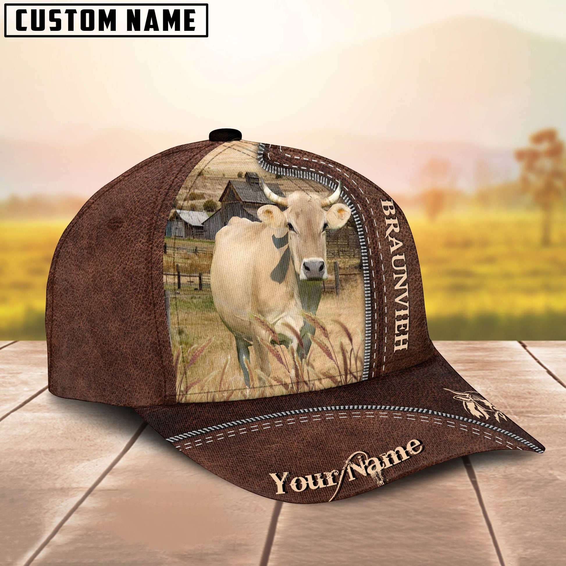 Uni Braunvieh Customized Name Leather Pattern Cap