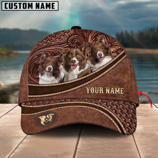 Uni Brown Border Collie Personalized Name Brown Carving Leather Pattern 3D Classic Cap