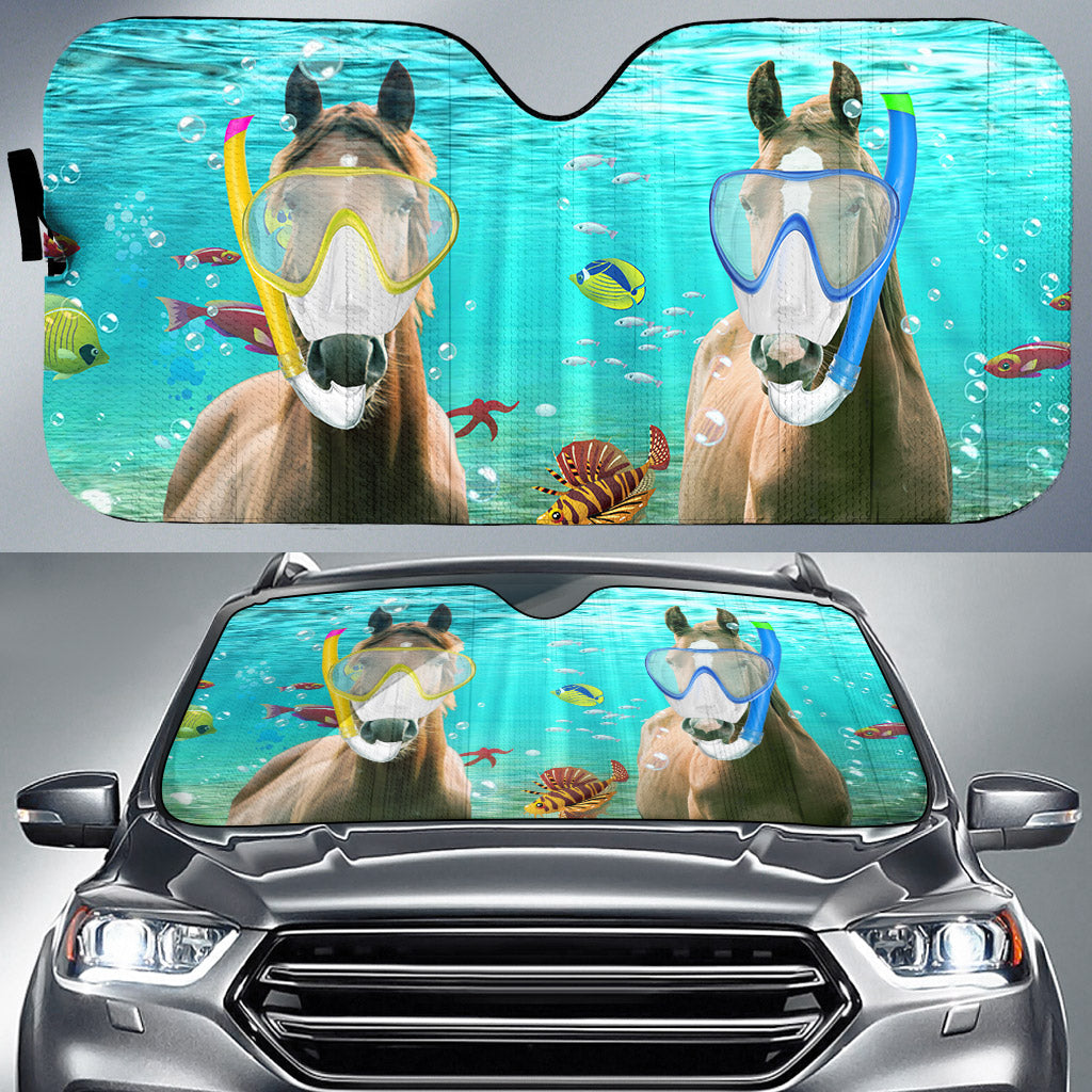Uni Brown Horse Diving All Over Printed 3D Sun Shade
