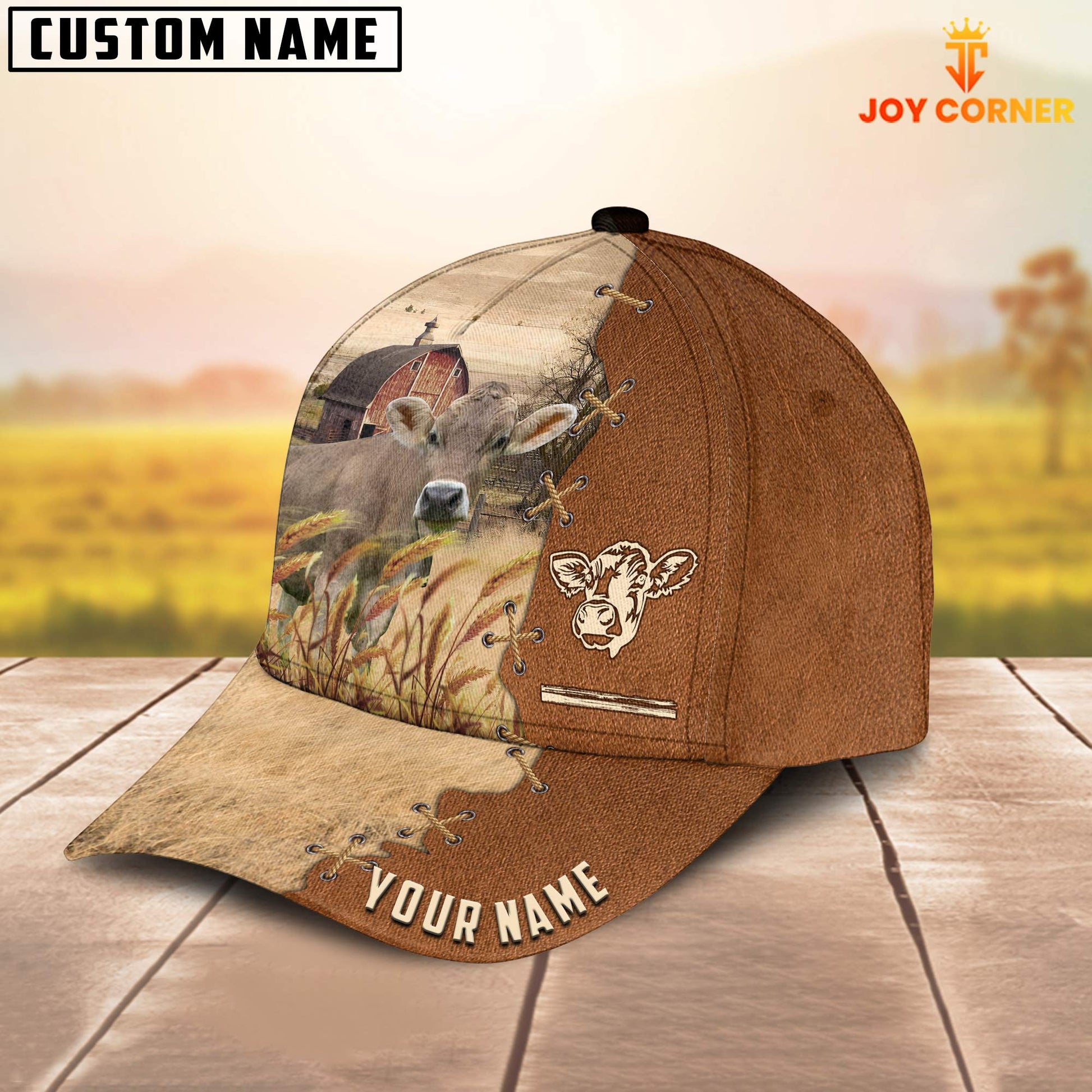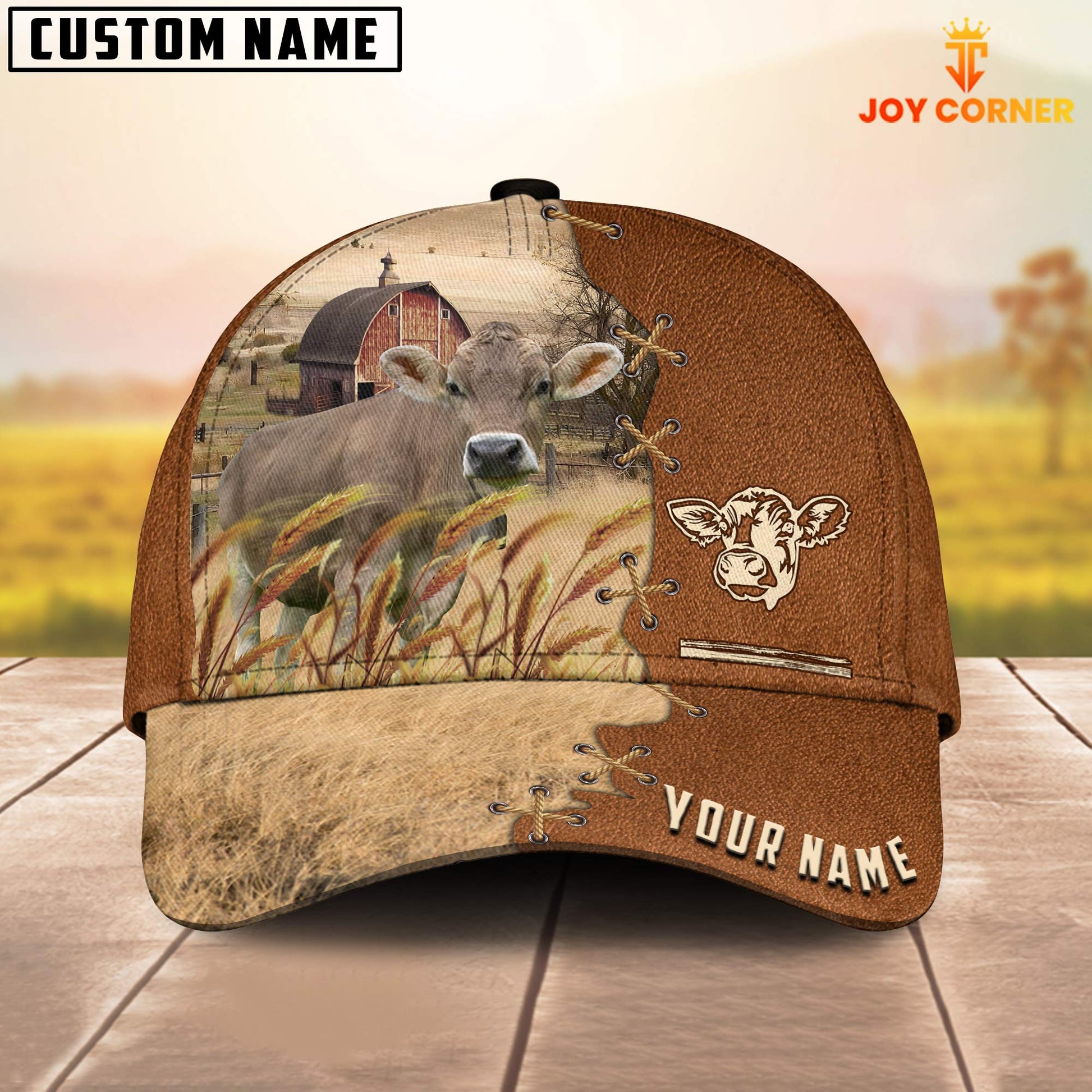 Uni Brown Swiss Custom Name Brown Leather Pattern Cap