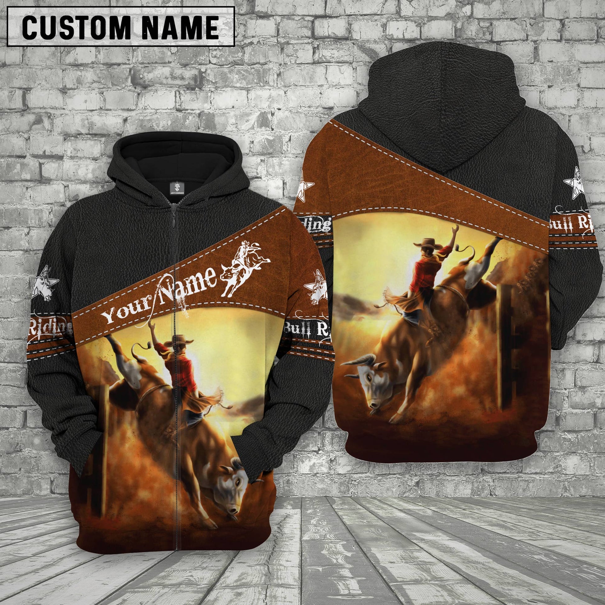 Uni Bull Riding Custom Name Printed 3D Black Hoodie