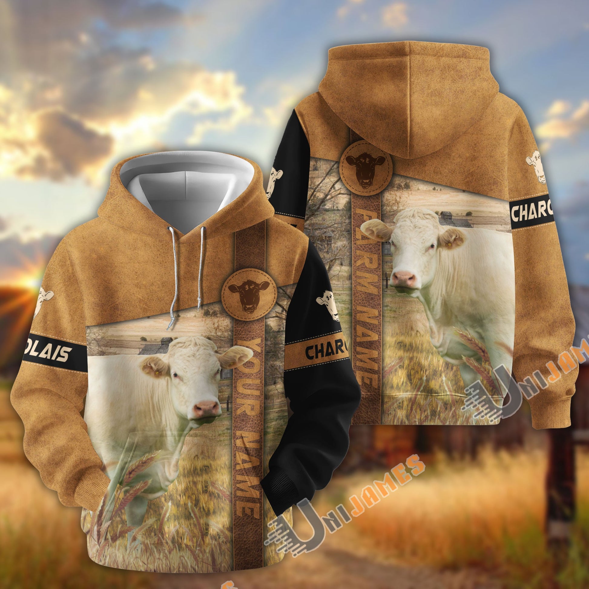 Uni Charolais Customize Name, Farm Name Brown Pattern Hoodie