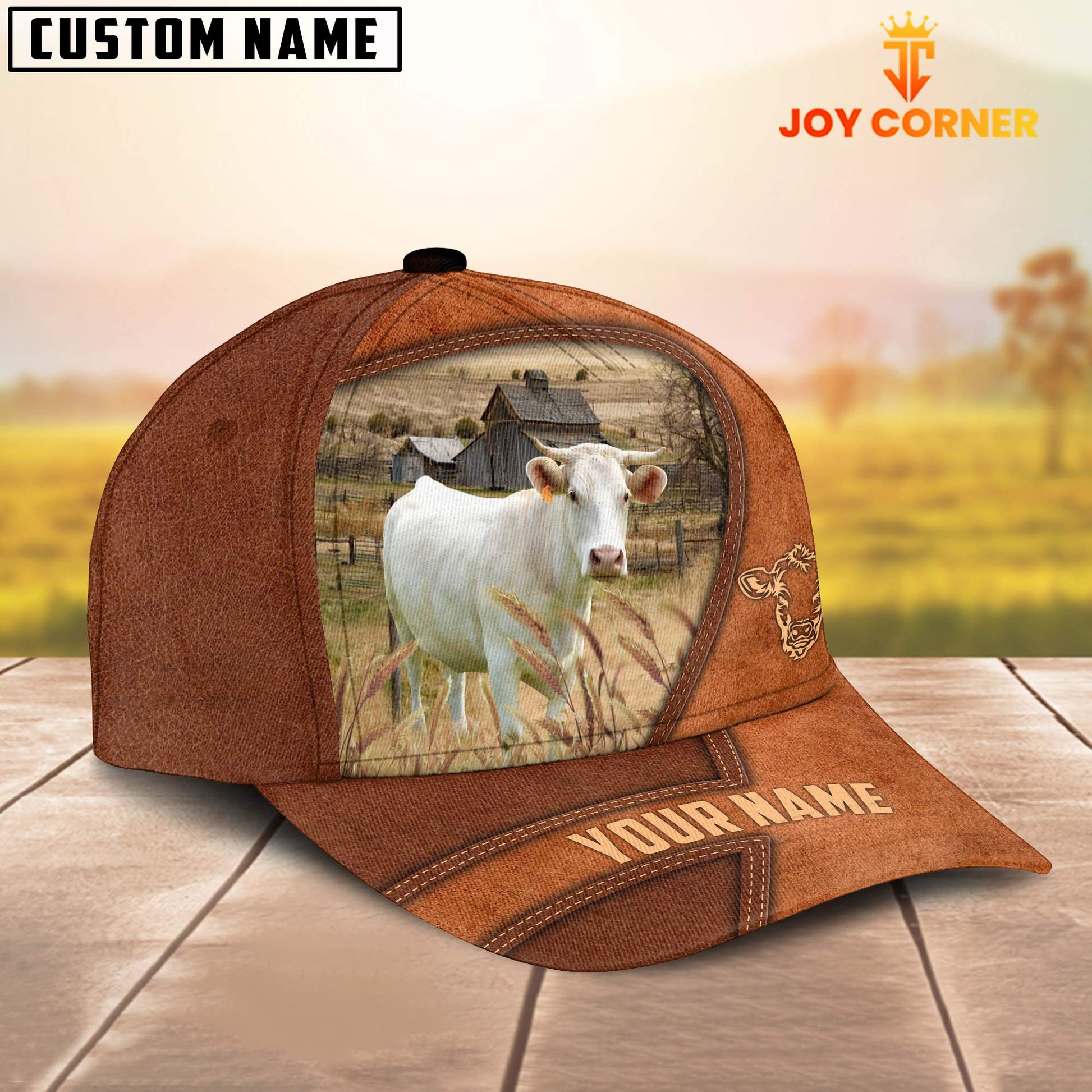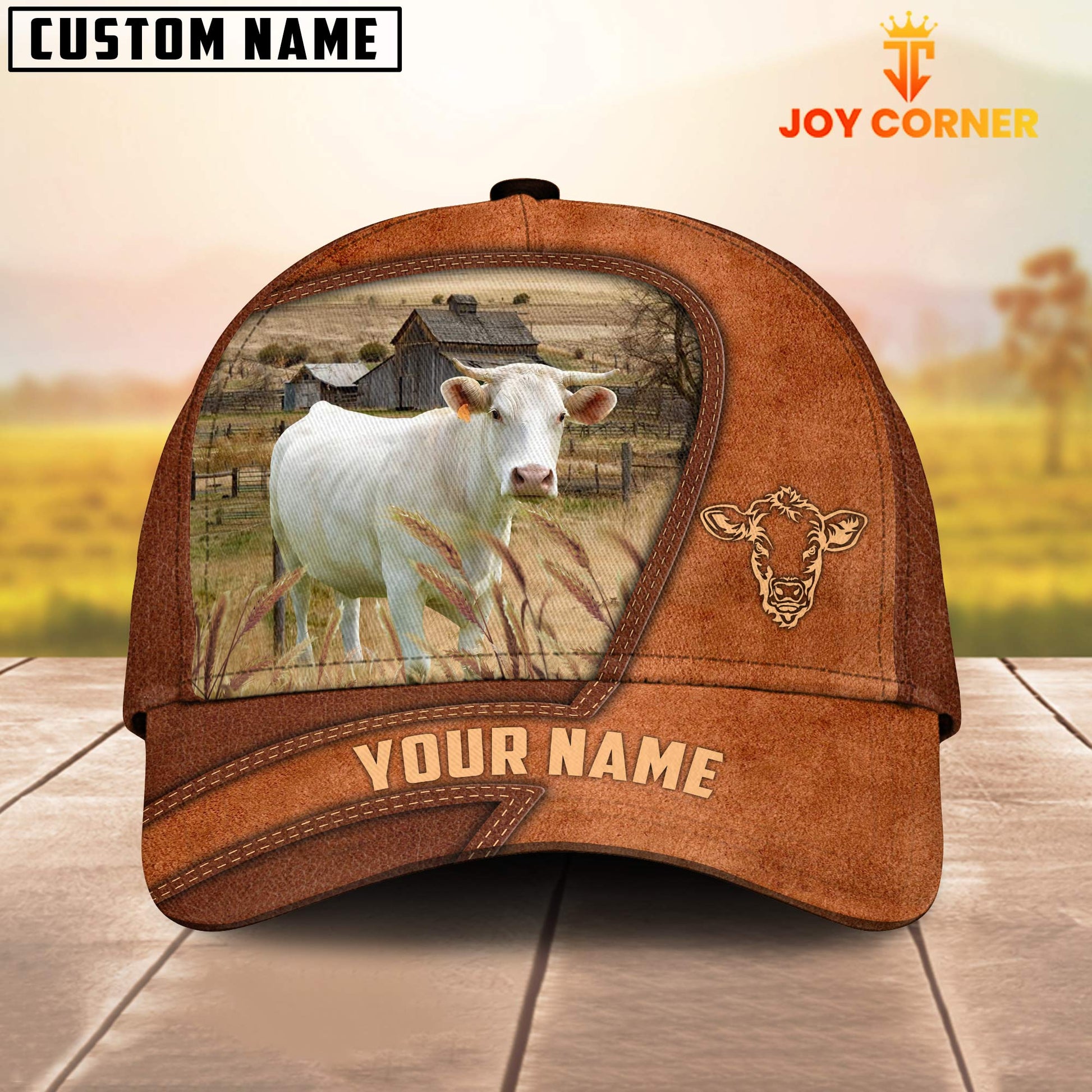 Uni Charolais Customized Name Brown Leather Pattern Cap