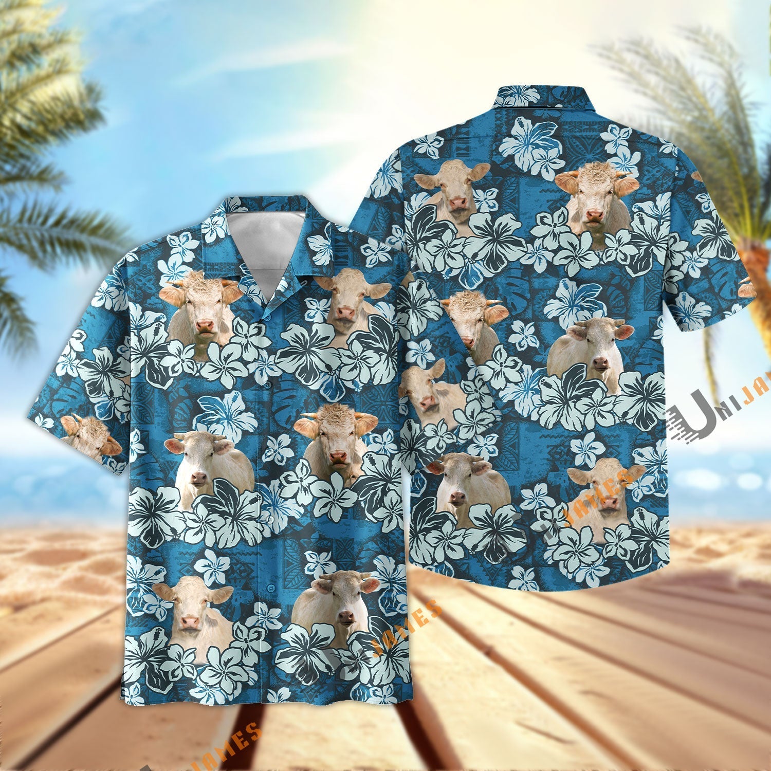 Uni Charolais Dark Blue Flower Hawaiian Shirt