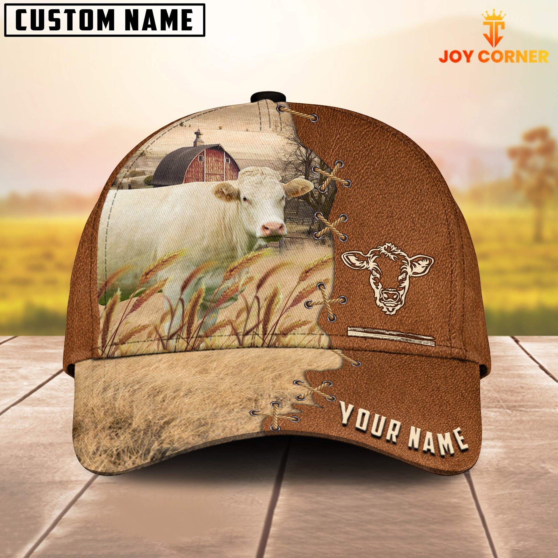 Uni Charolais No Horn Custom Name Brown Leather Pattern Cap