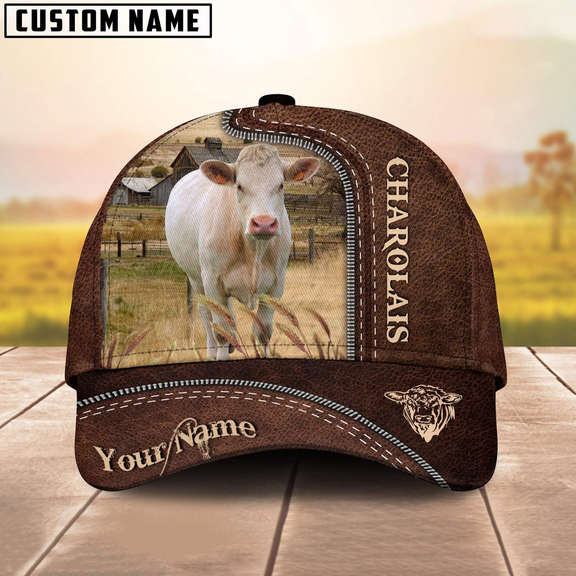 Uni Charolais No Horn Customized Name Leather Pattern Cap