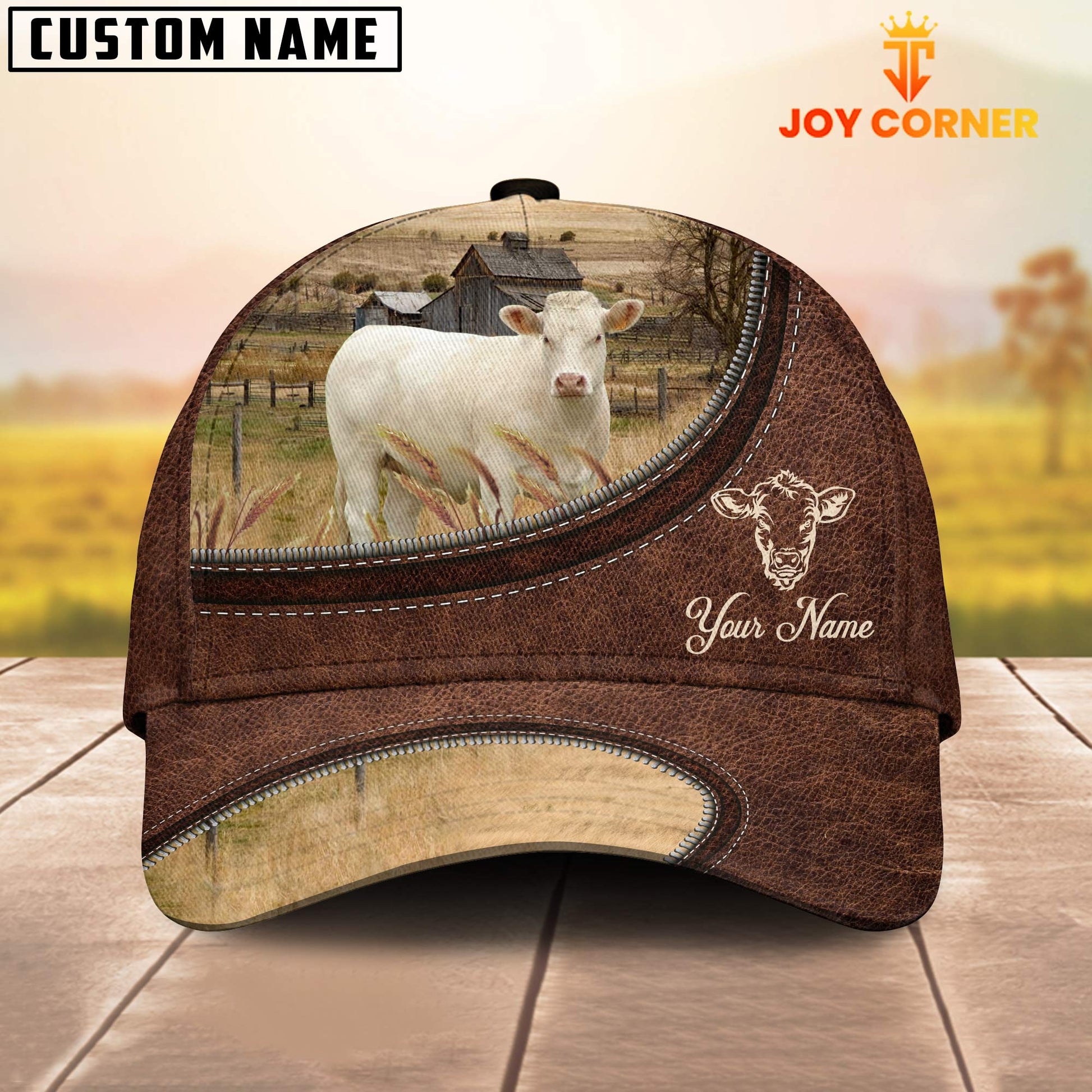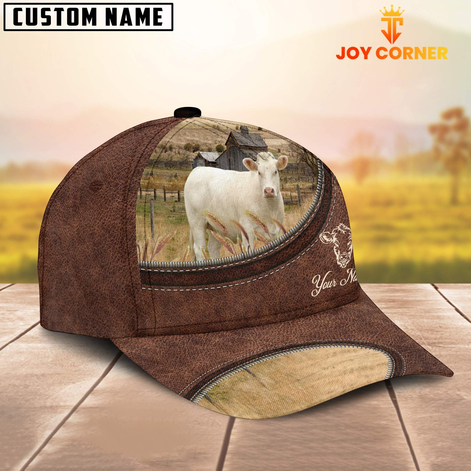 Uni Charolais No Horn On The Farm Customized Name Leather Pattern Cap
