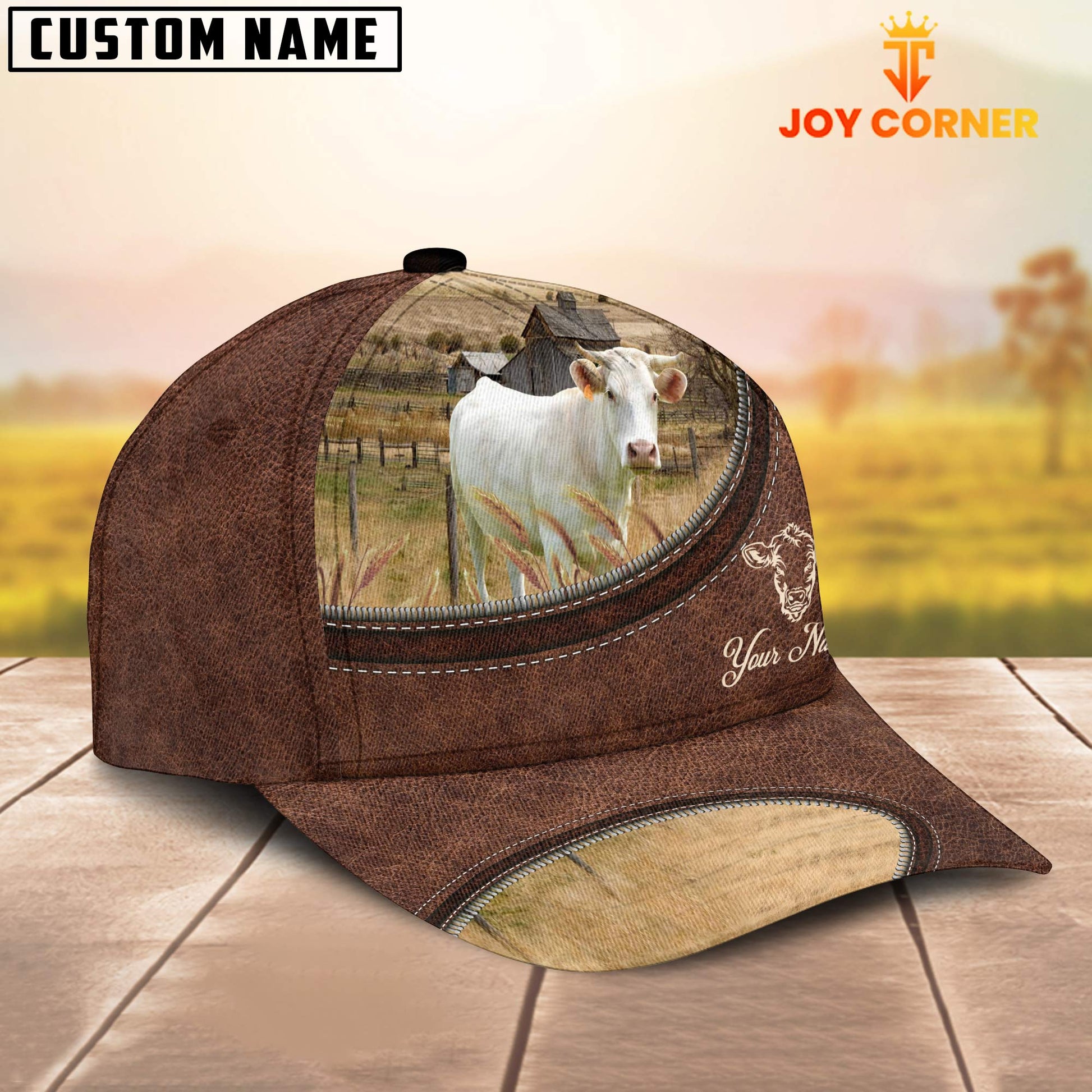 Uni Charolais On The Farm Customized Name Leather Pattern Cap