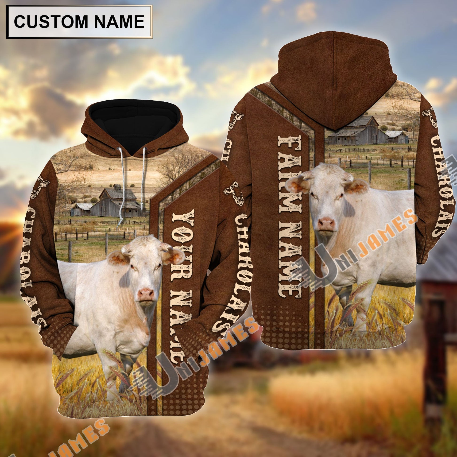 Uni Charolais Personalized Name, Farm Name 3D Hoodie