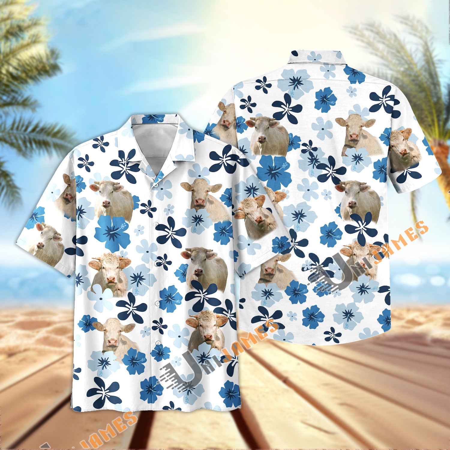 Uni Charolais Retro Blue Aloha Floral Hawaiian Shirt