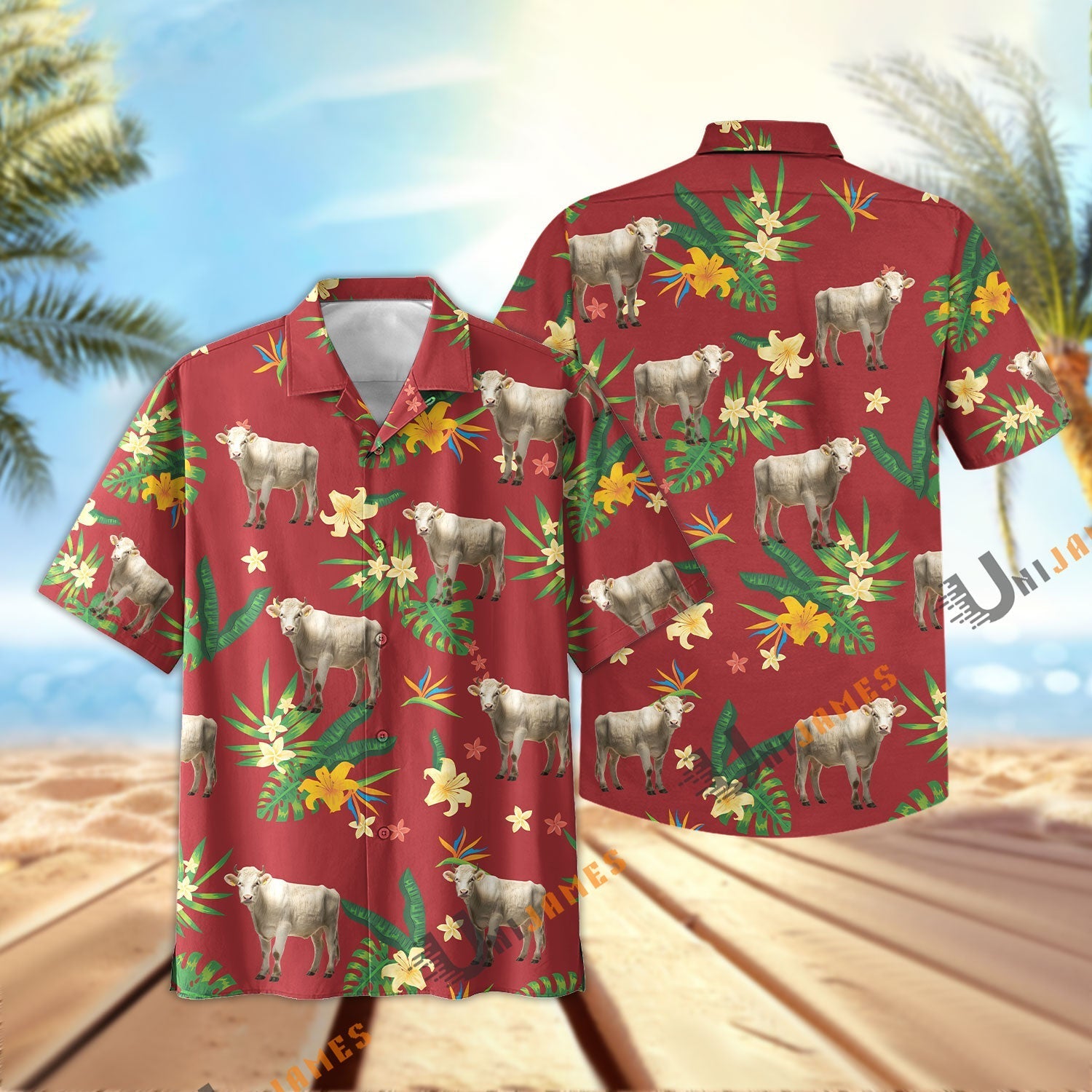 Uni Charolais Vintage Red Summer Hawaiian Shirt