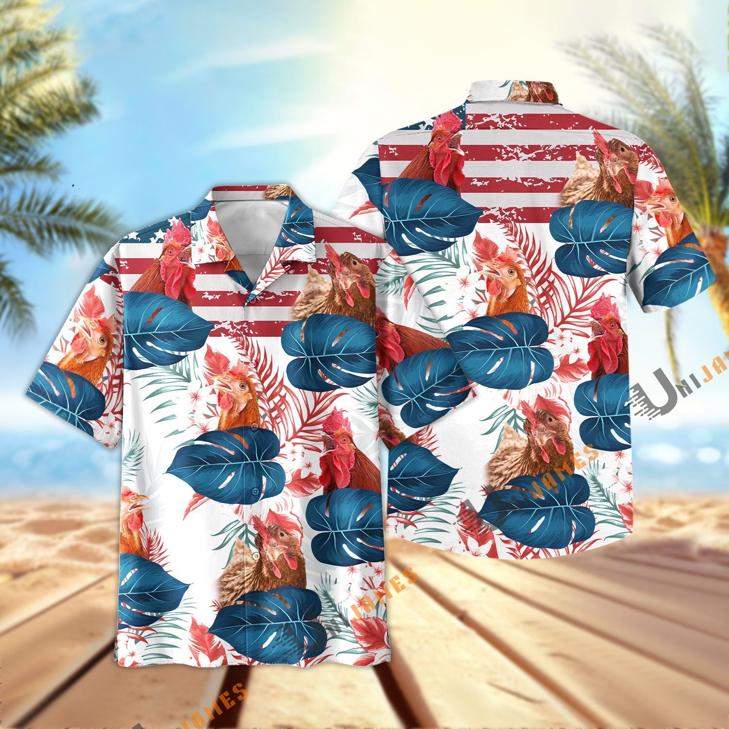 Uni Chicken US Flag Flower Hawaiian Shirt
