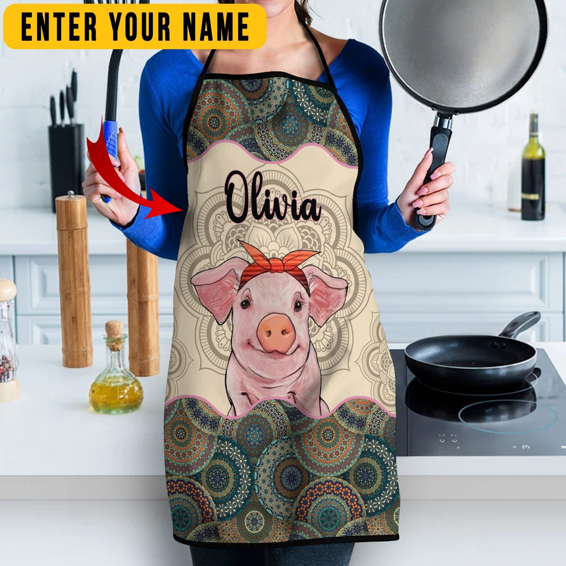 Uni Personalized Name Mandala Pattern Pig All Over Printed 3D Apron