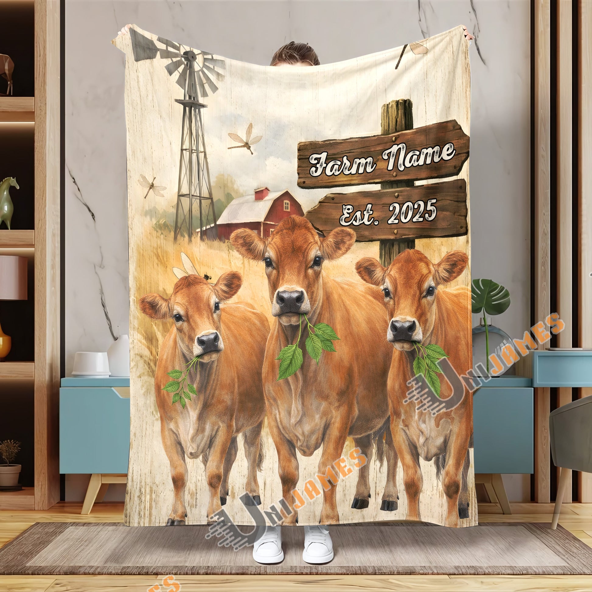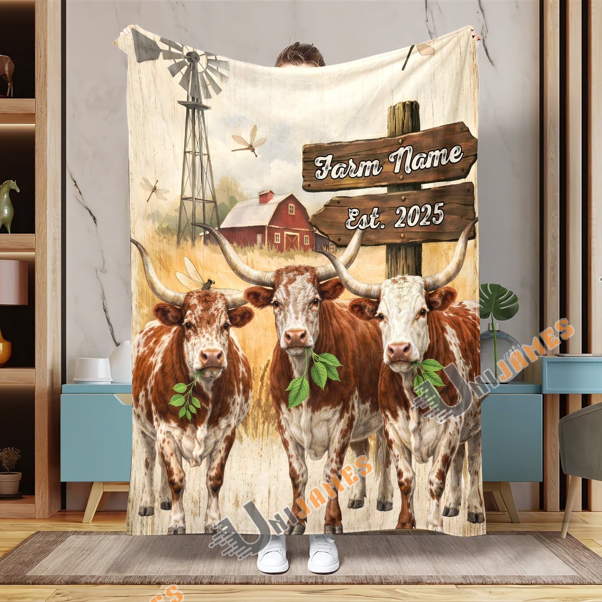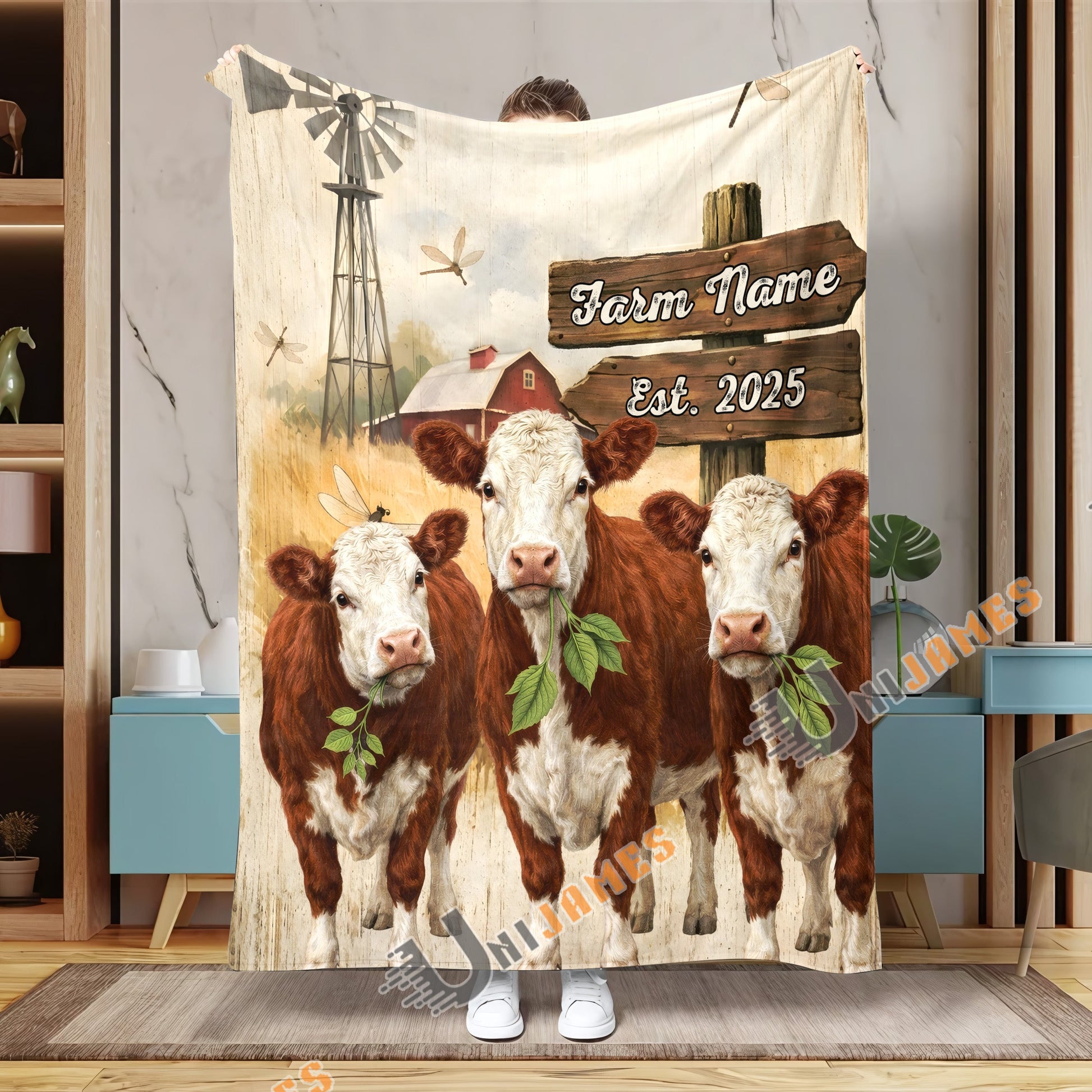 Uni Cow Country Herd Farm Personalized Blanket (10 Cattle Breeds)