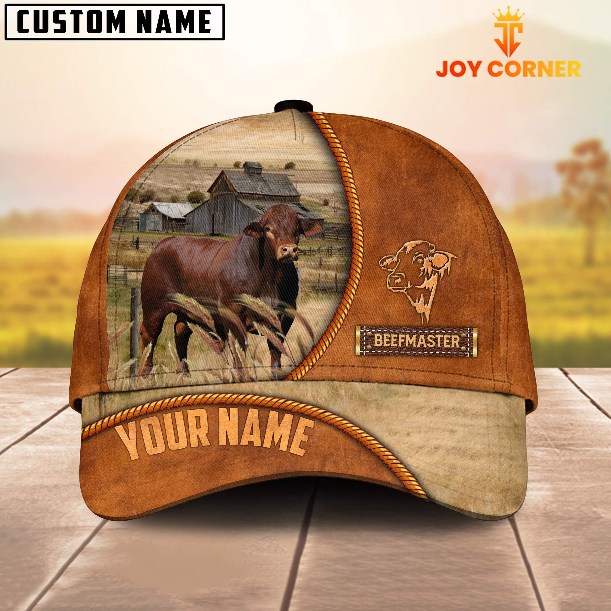 Uni Custom Name Beefmaster Leather Pattern Cap