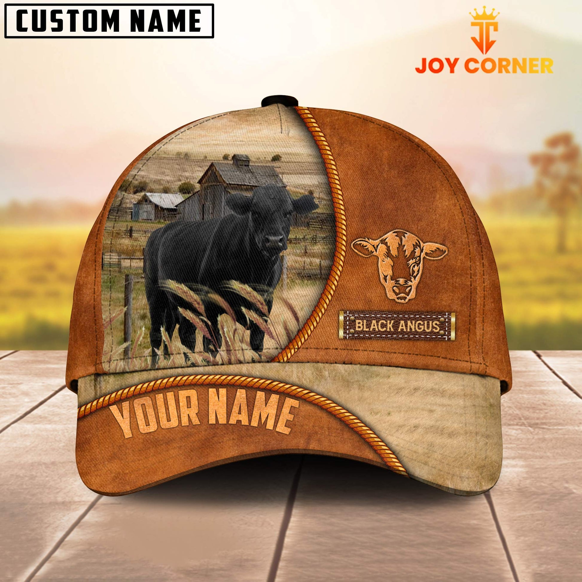 Uni Custom Name Black Angus Leather Pattern Cap TT2