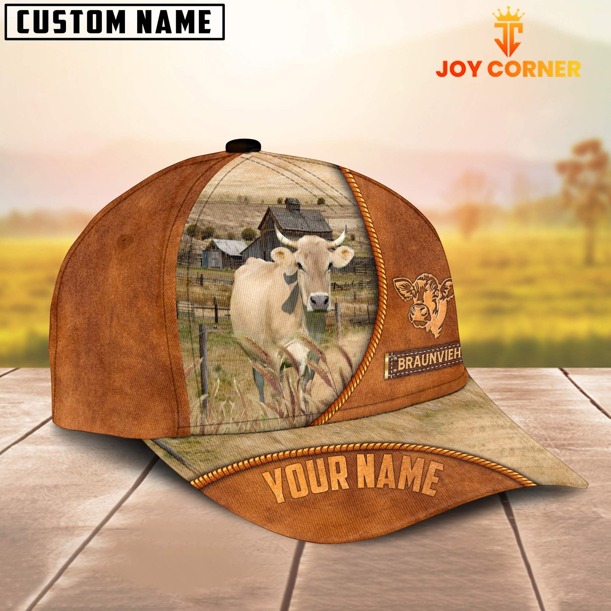 Uni Custom Name Braunvieh Leather Pattern Cap