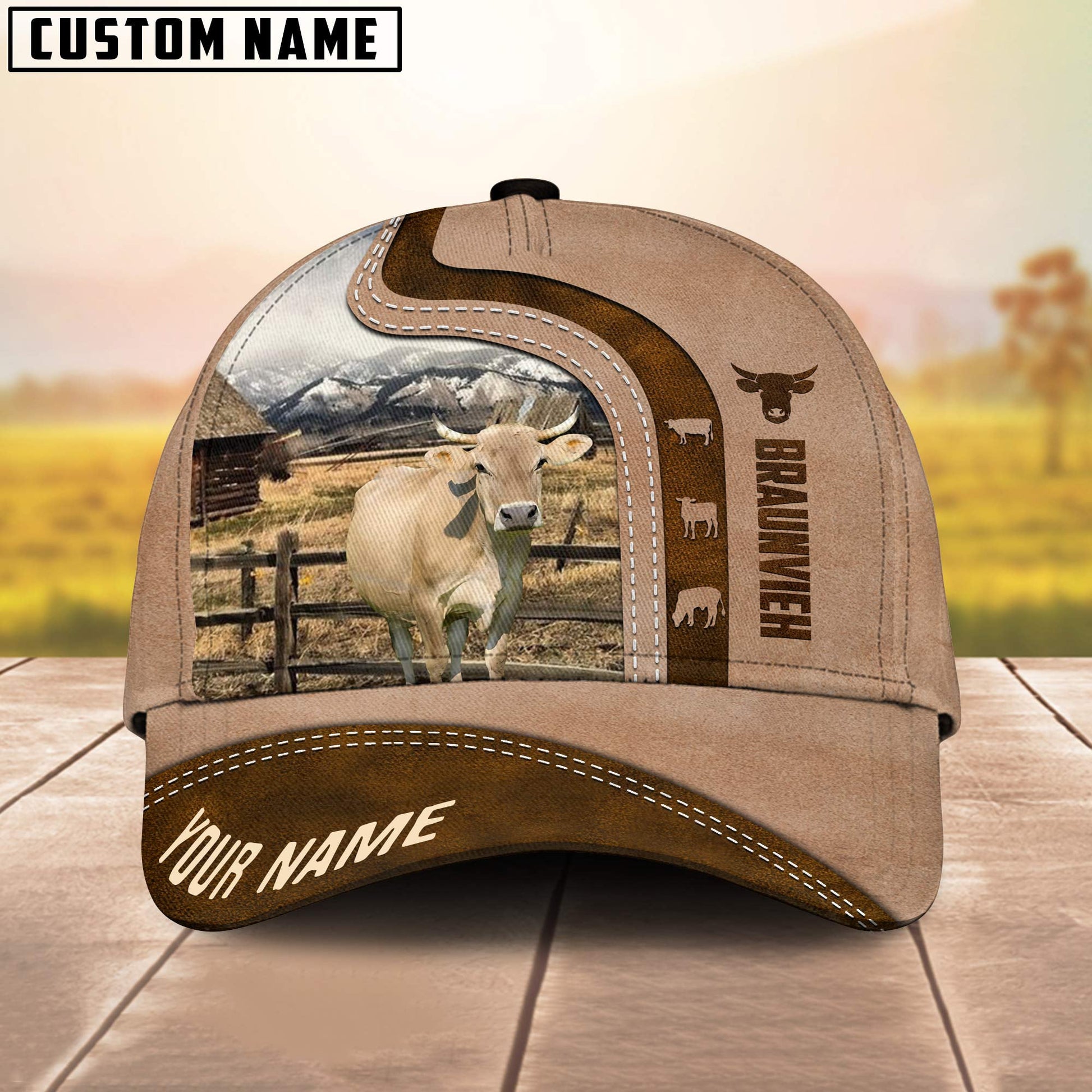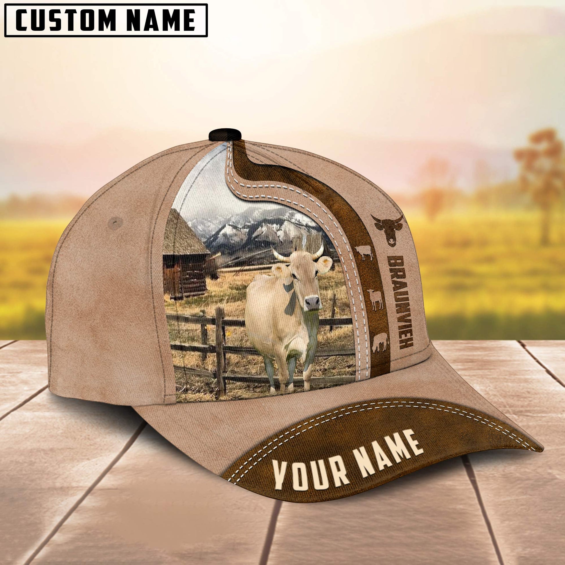 Uni Custom Name Braunvieh Cattle Light Brown Cap