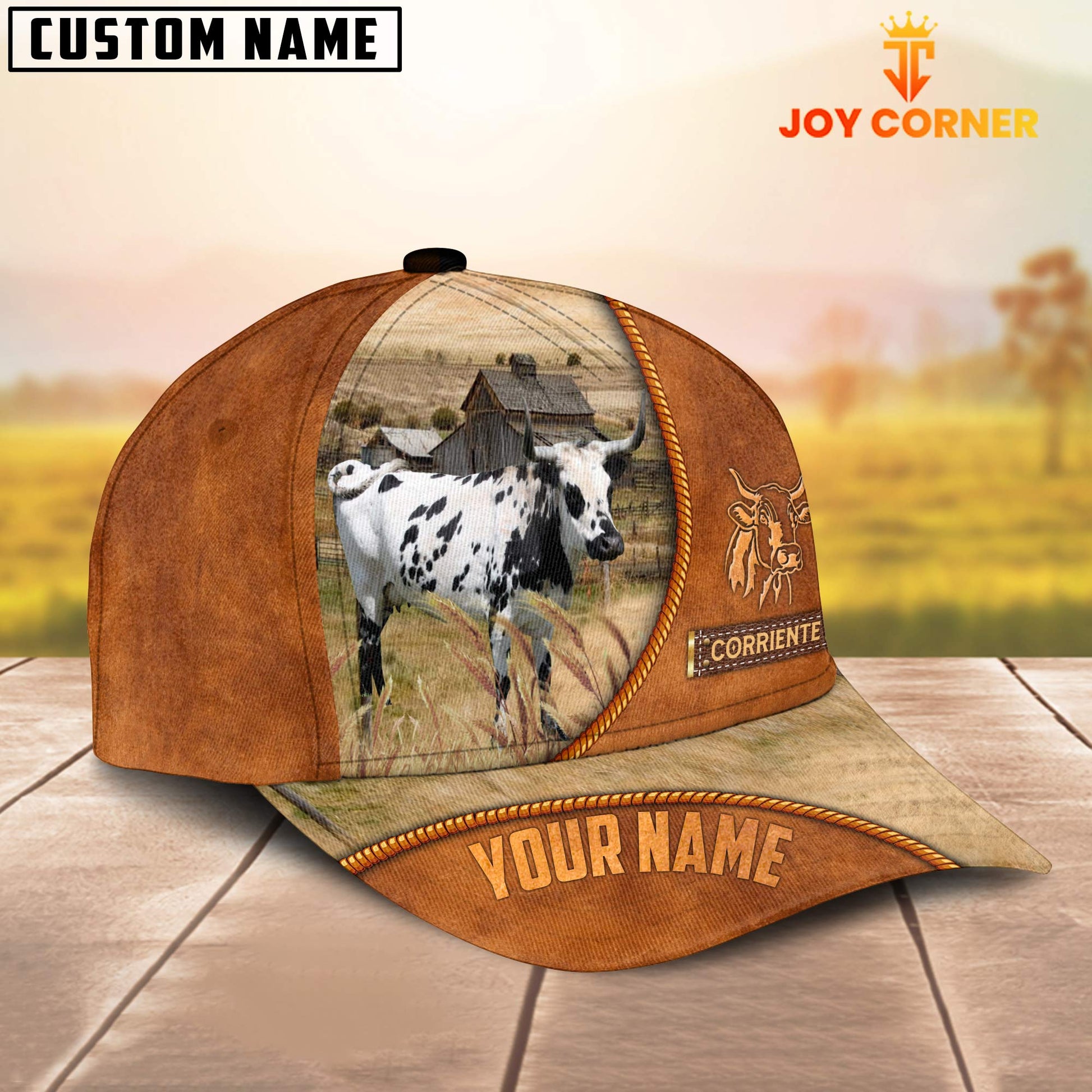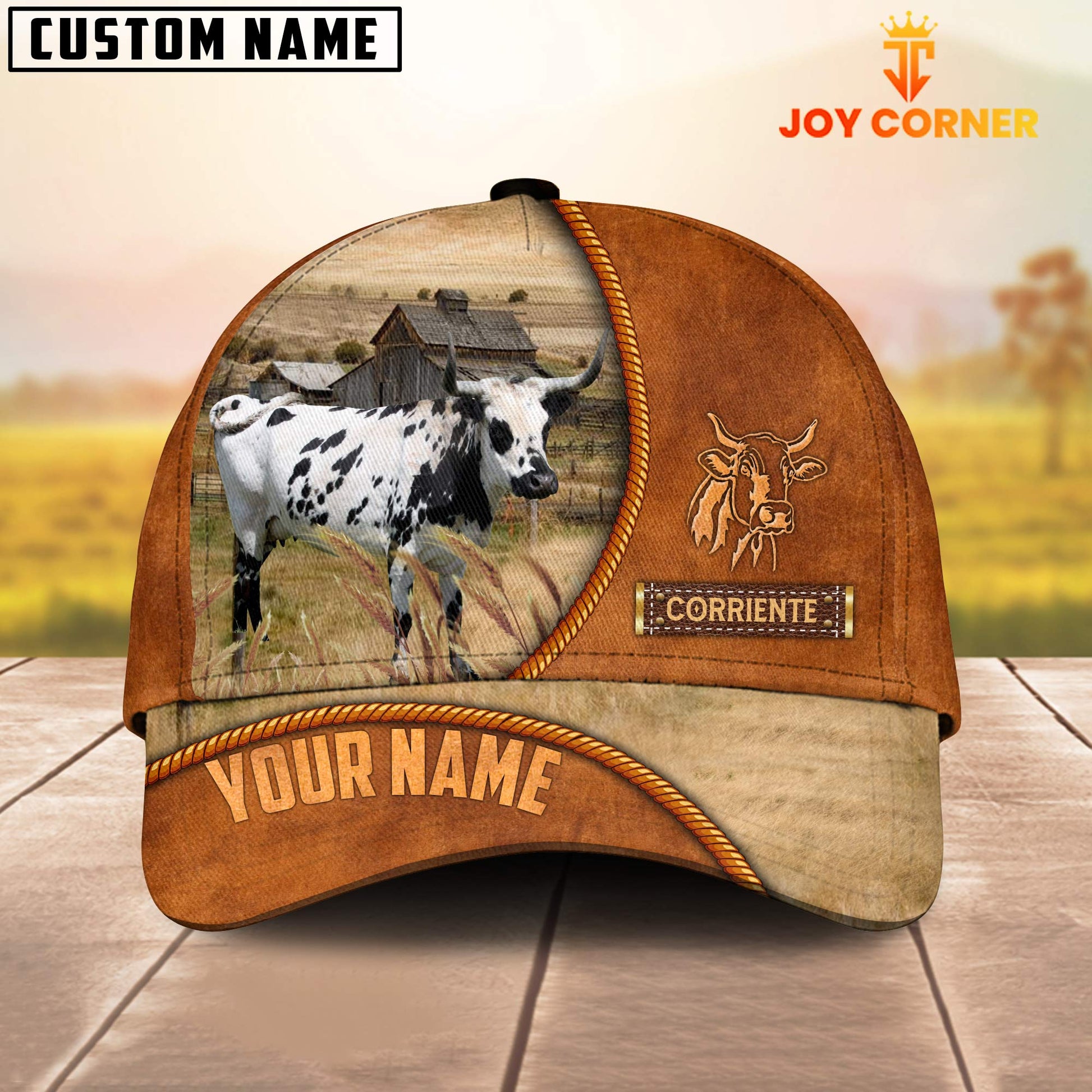 Uni Custom Name Corriente Leather Pattern Cap