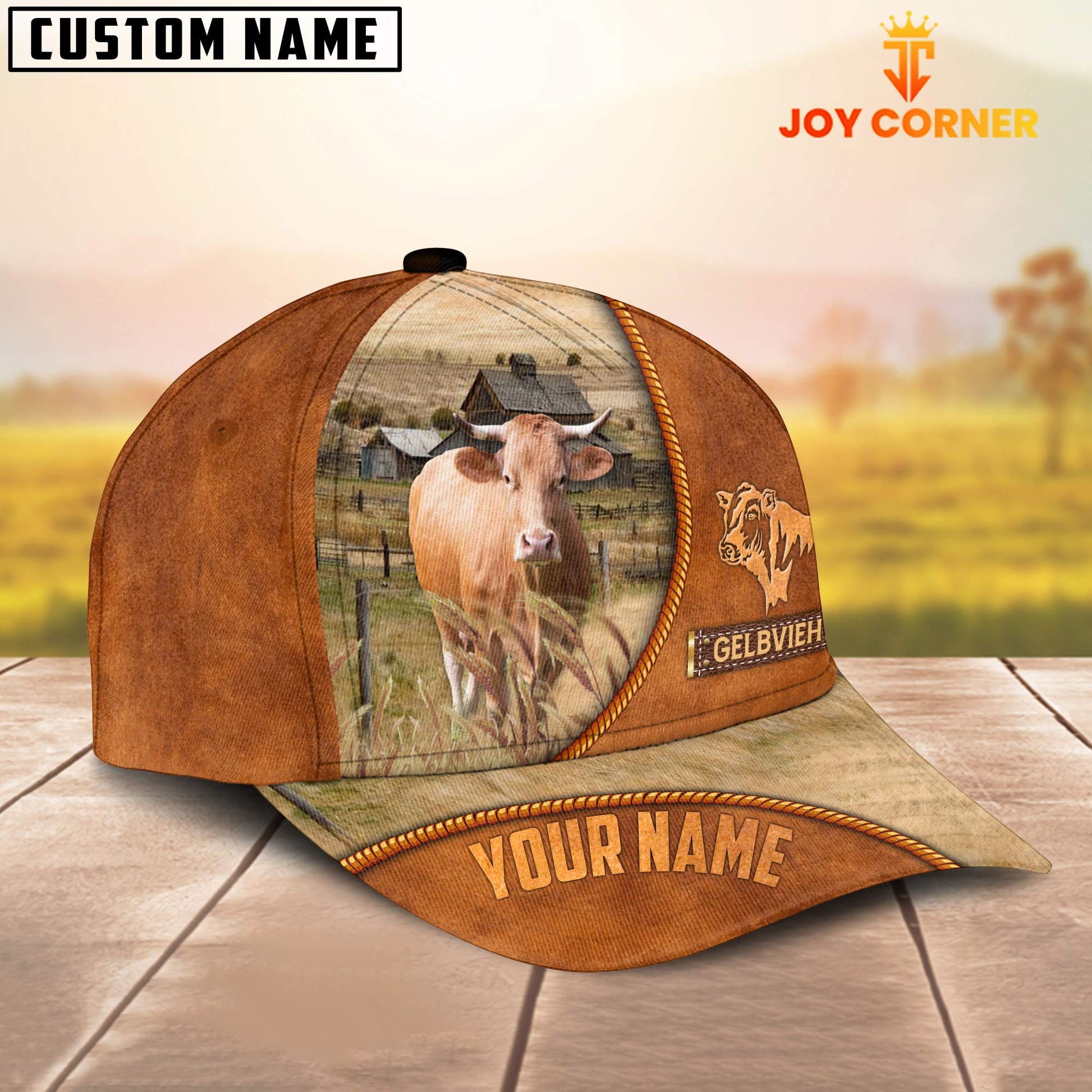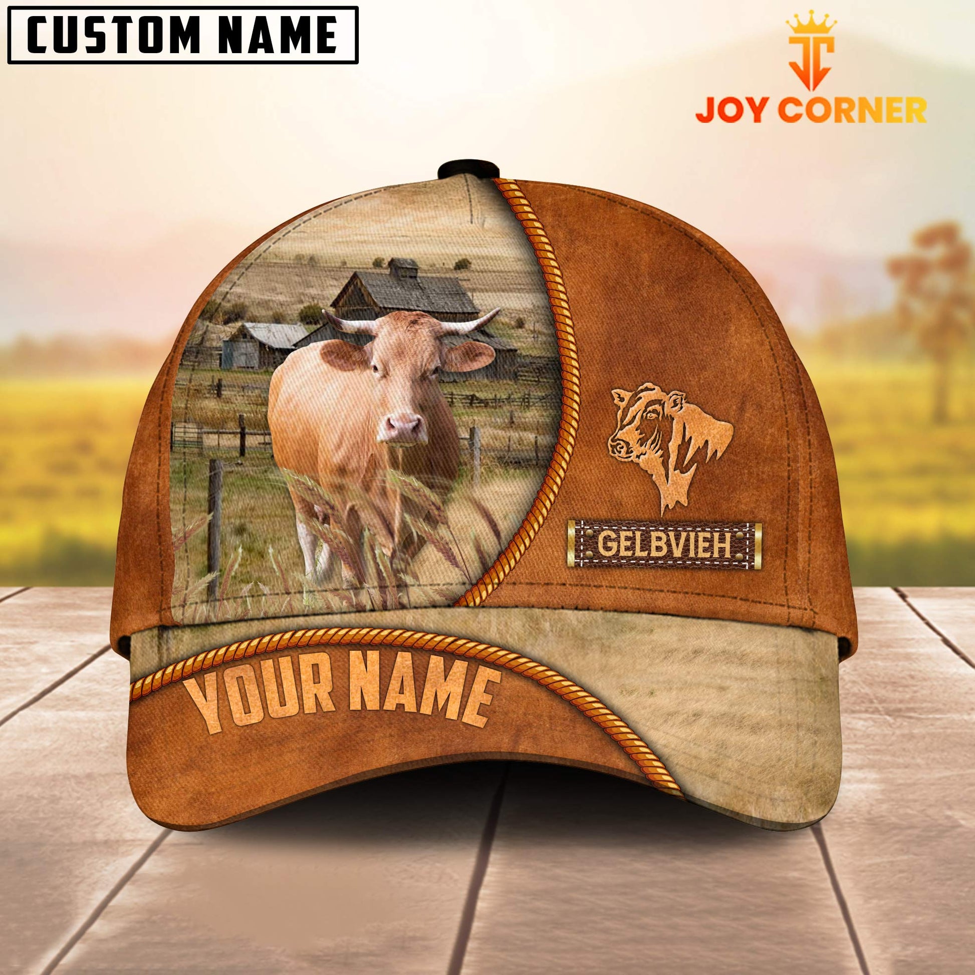 Uni Custom Name Gelbvieh Leather Pattern Cap