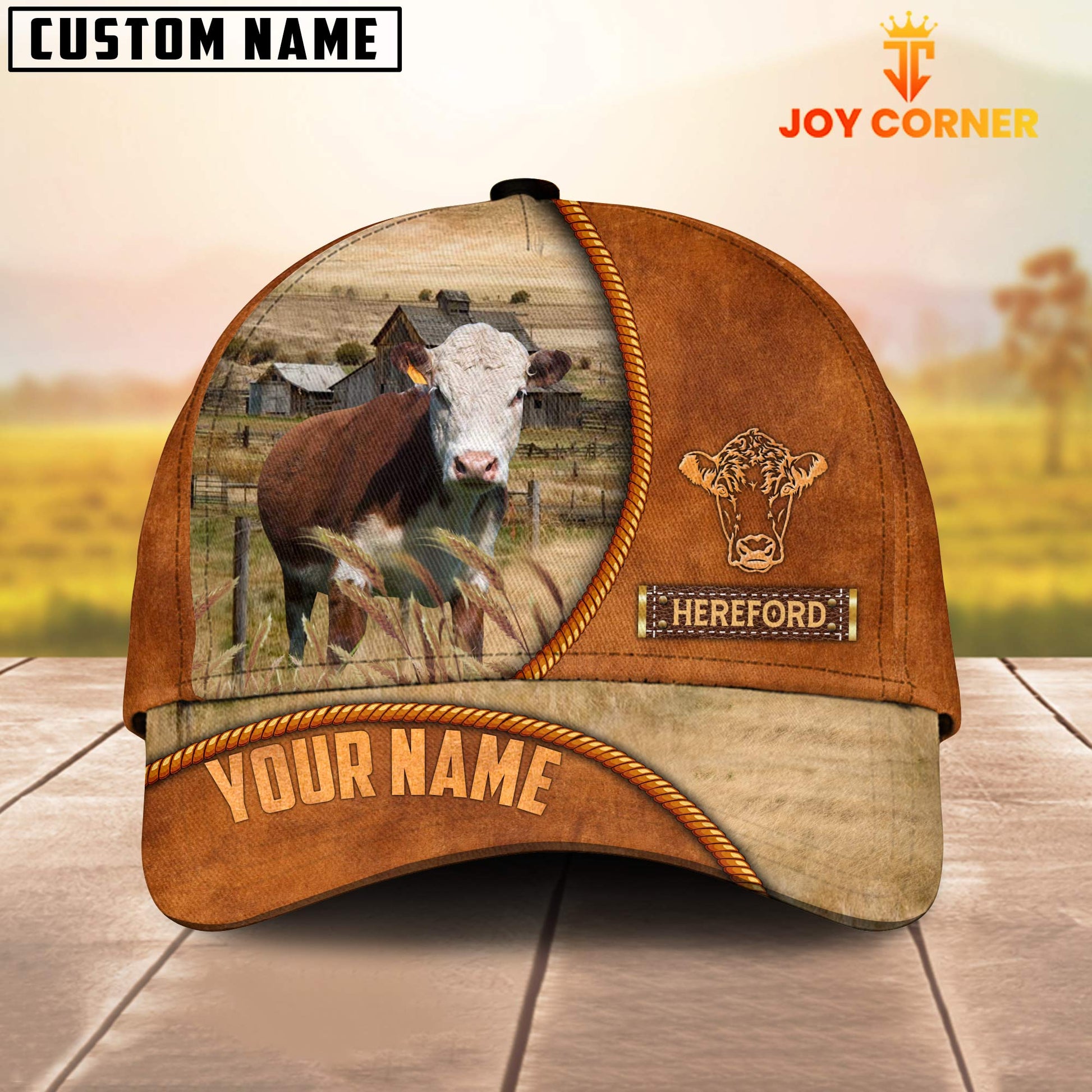 Uni Custom Name Hereford Leather Pattern Cap TT6