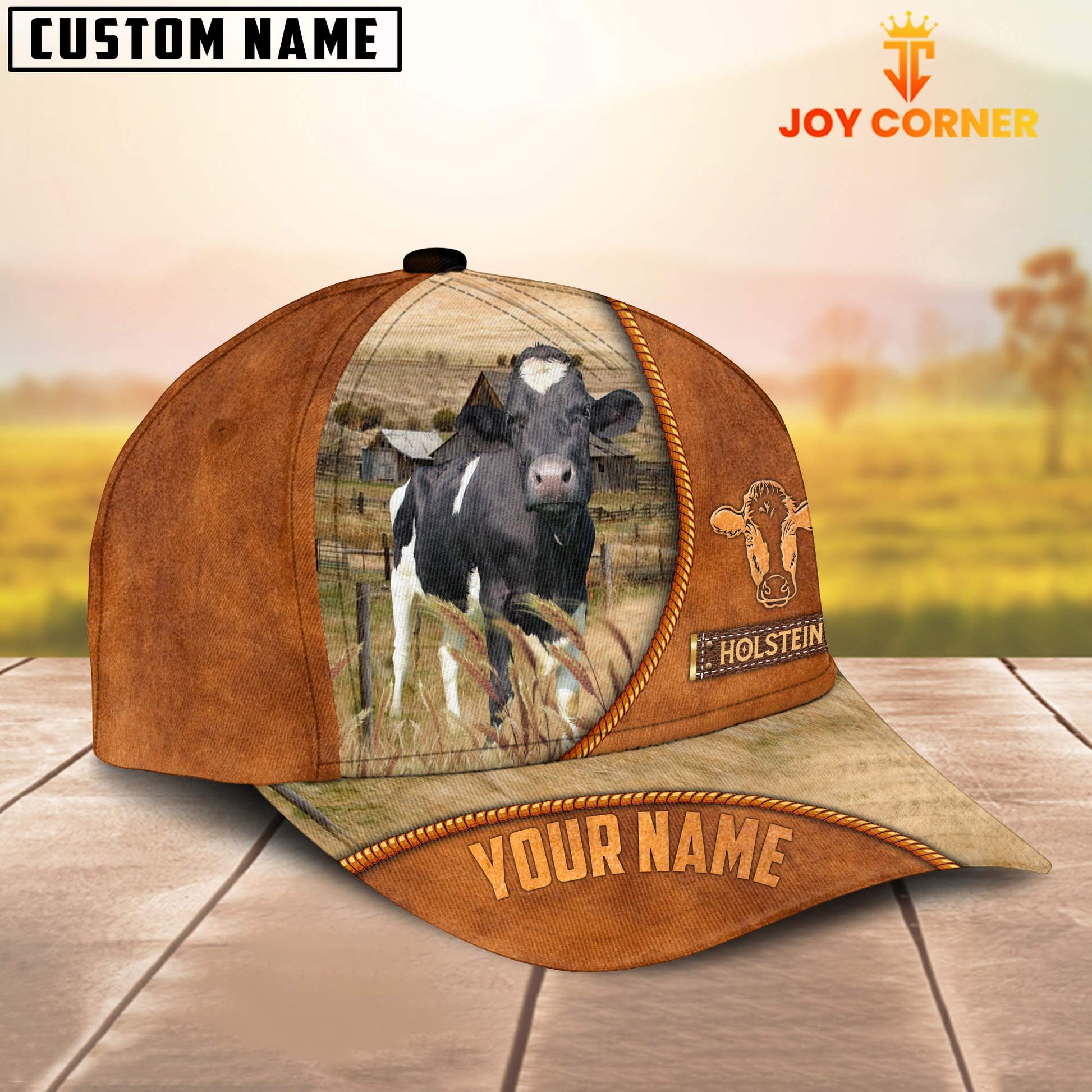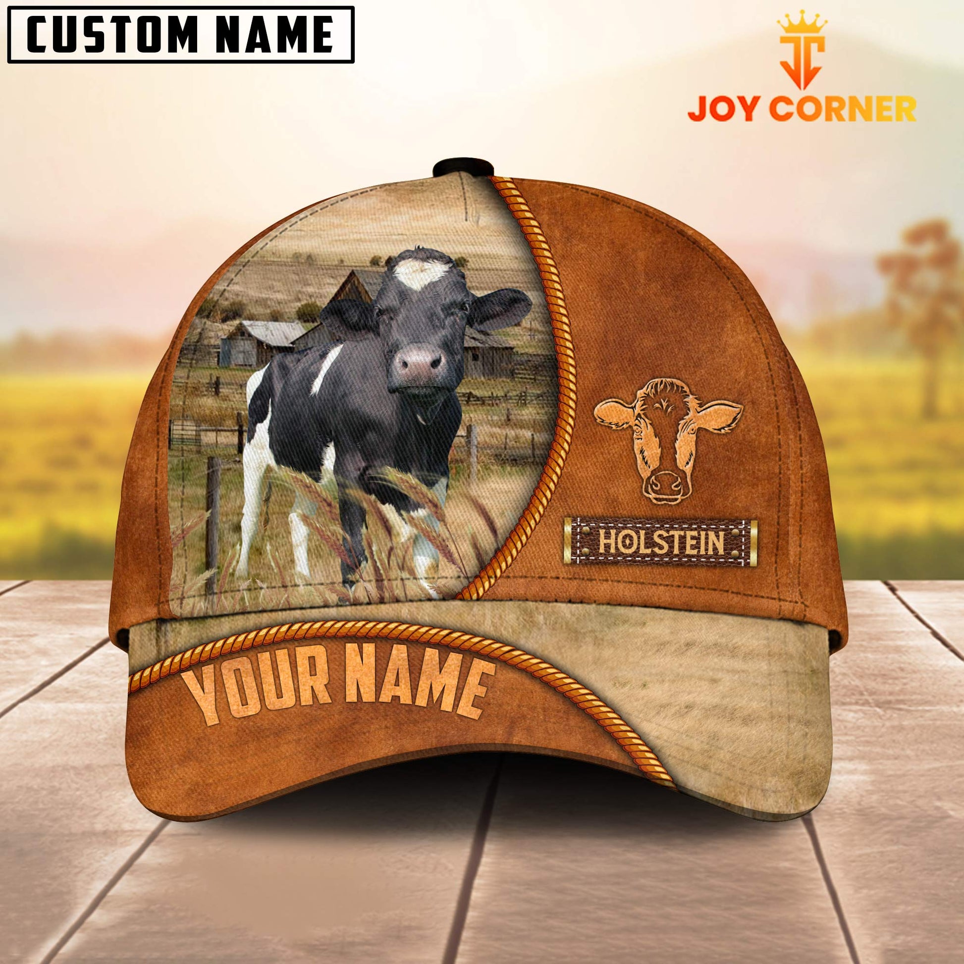 Uni Custom Name Holstein Leather Pattern Cap TT5