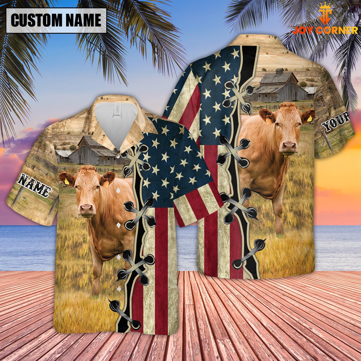 Uni Custom Name Limousin Cattle American Flag 3D Shirt